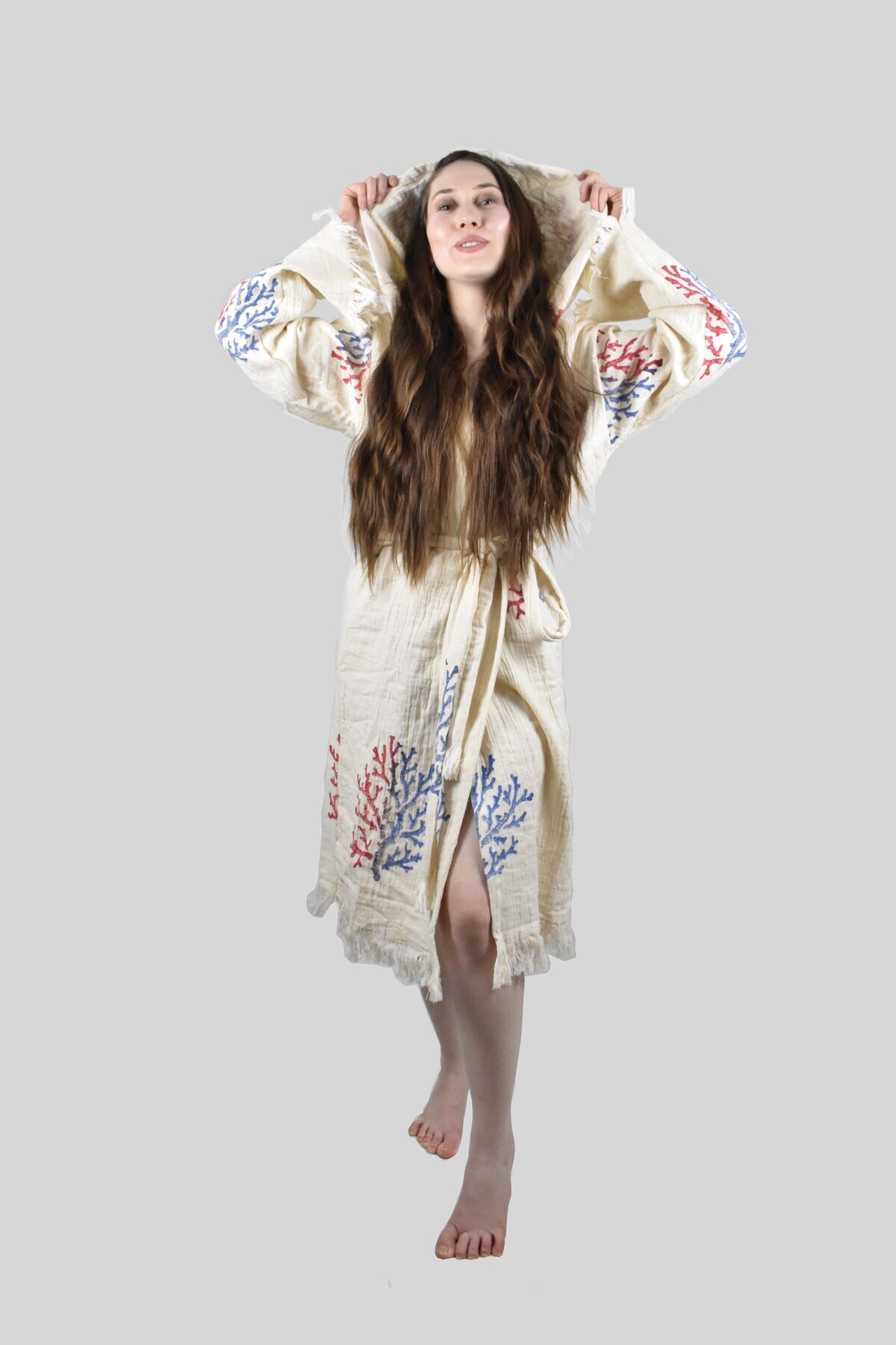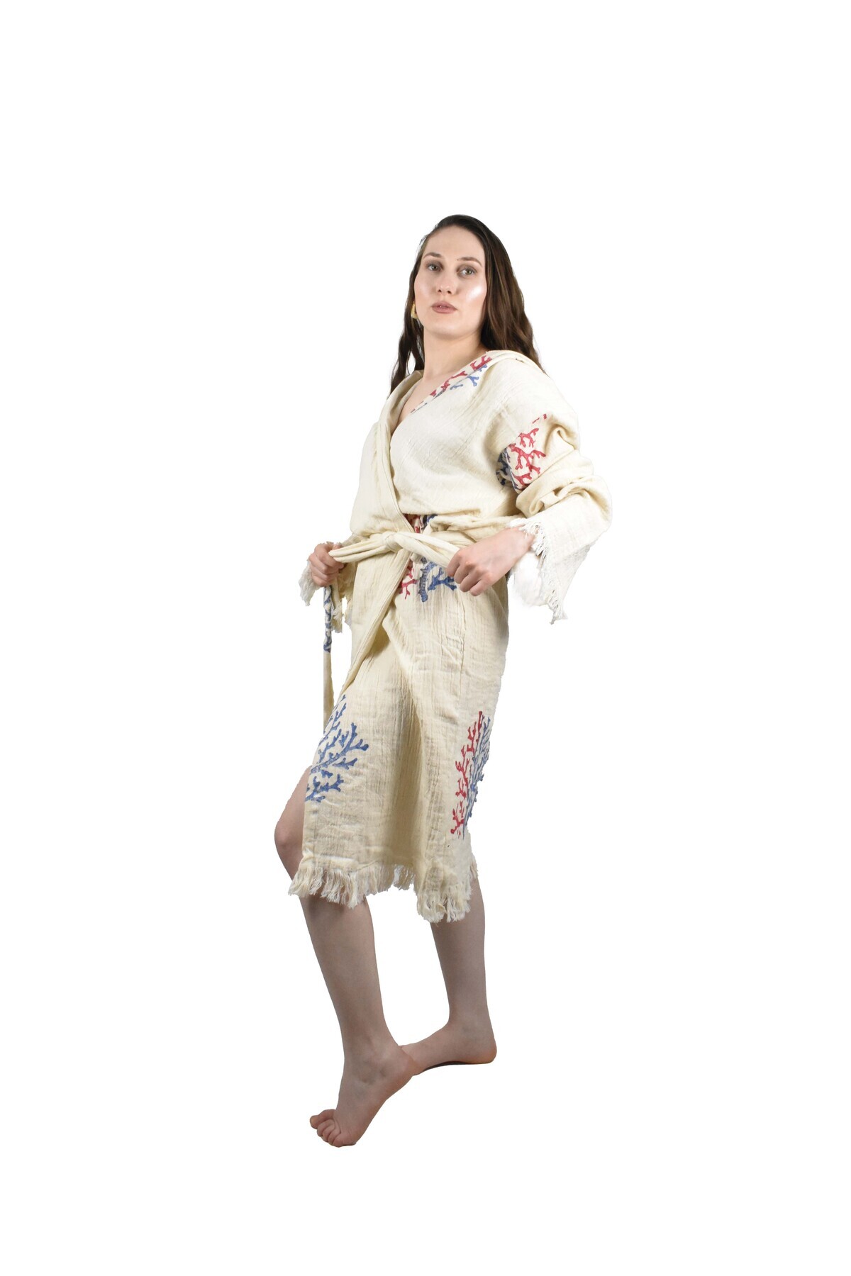 Mavi Mercan Müslin Peştemal Pamuk Bornoz Püsküllü Sabahlık Cotton Muslin Hammam Dressing Gown Mavi Mercan Müslin Peştemal Pamuk Bornoz Püsküllü Sabahlık Cotton Muslin Hammam Dressing Gown FB001 XL