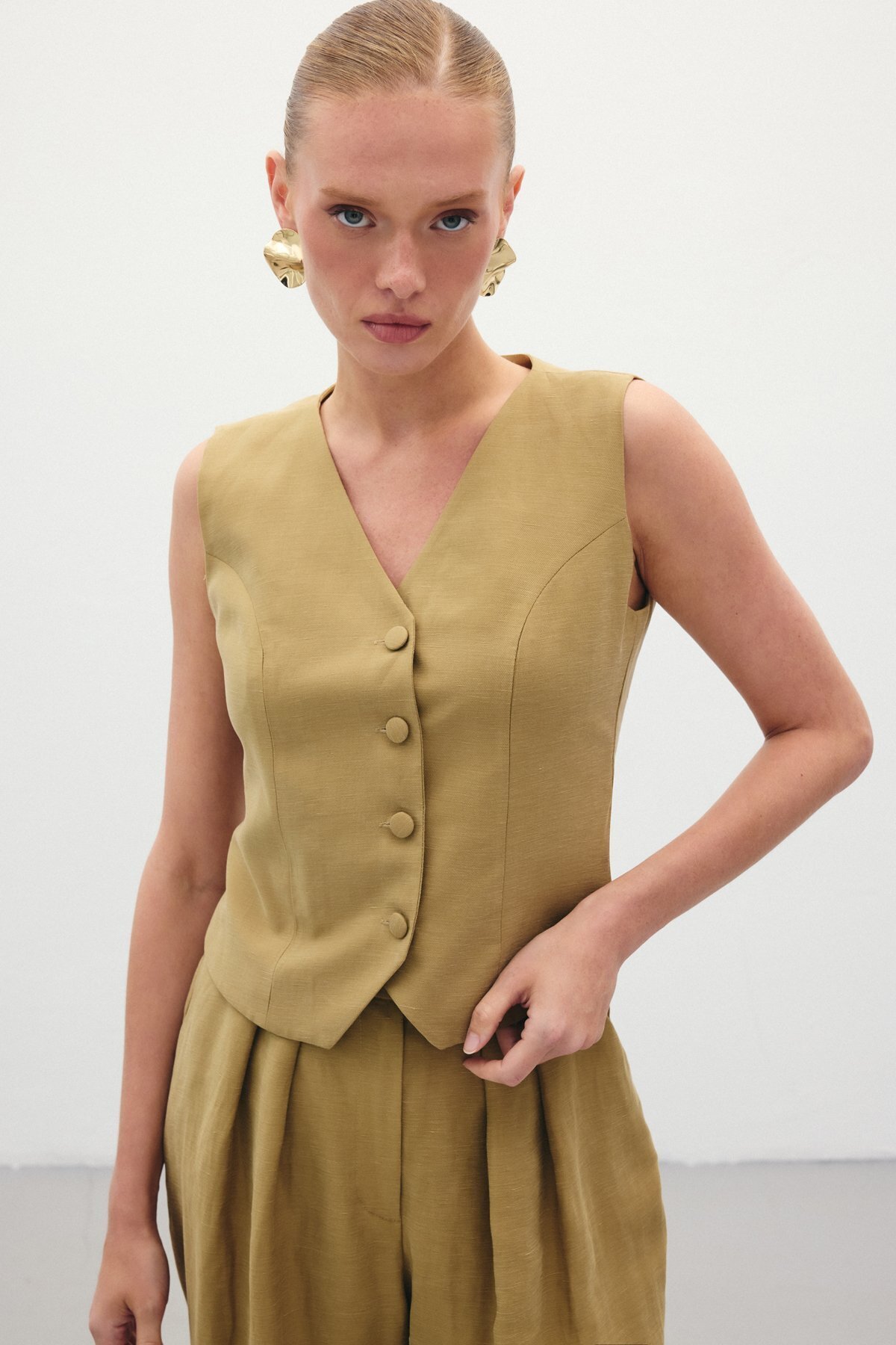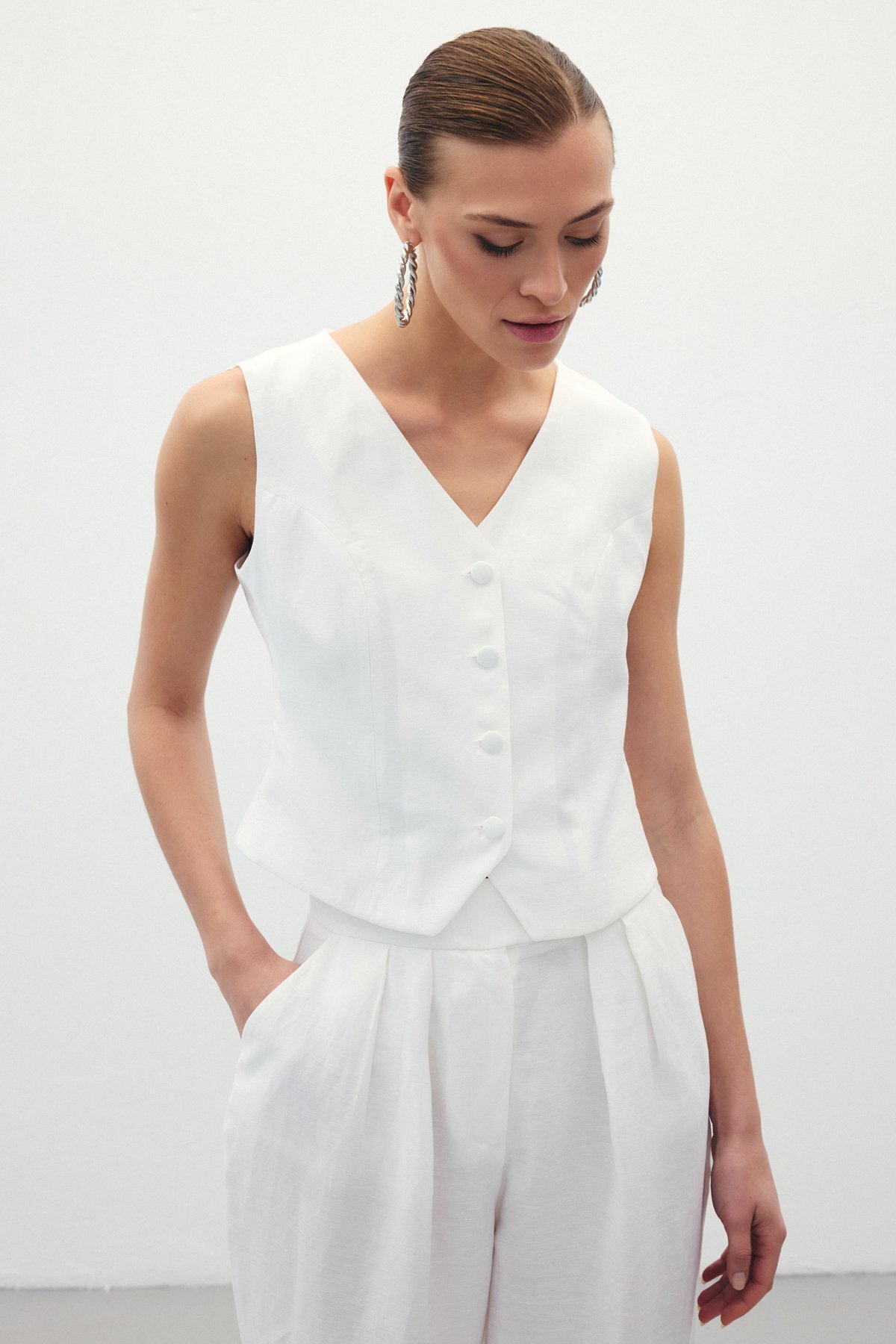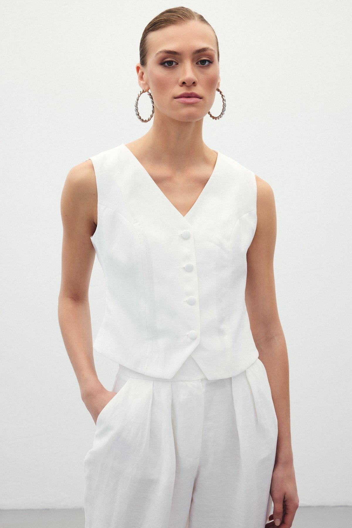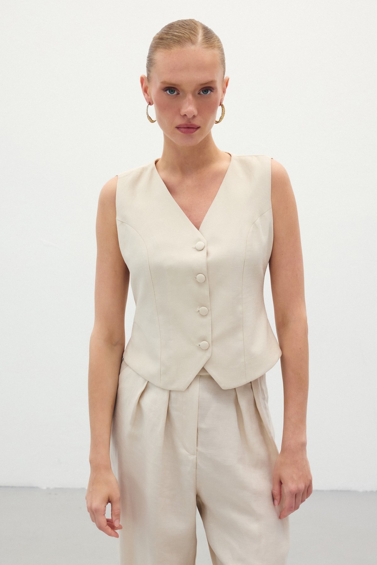 Keten Yelek - Ekru Keten Yelek - Ekru STN139KYE1815 40
