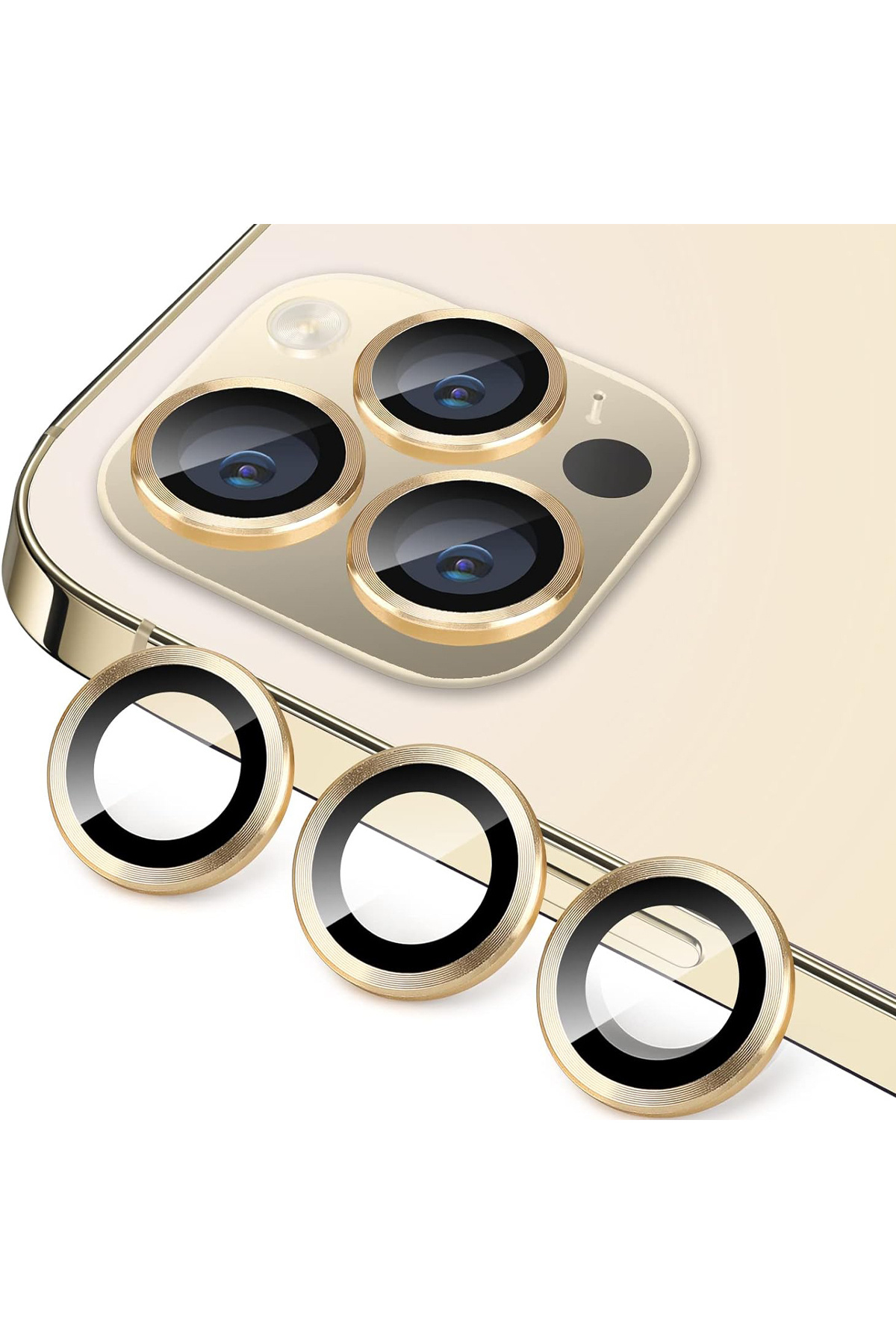 İphone 14 Pro Max Uyumlu Kamera lensi koruyucu mercek lens Gold