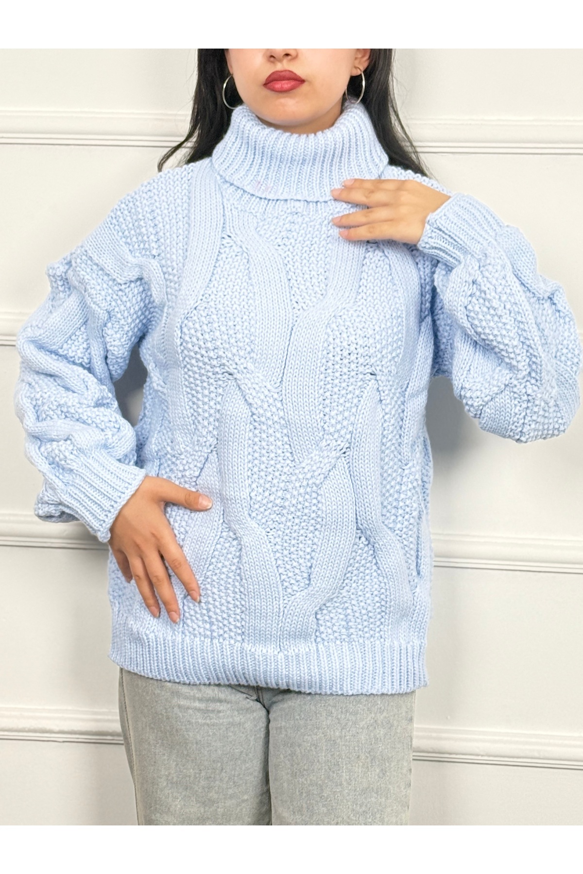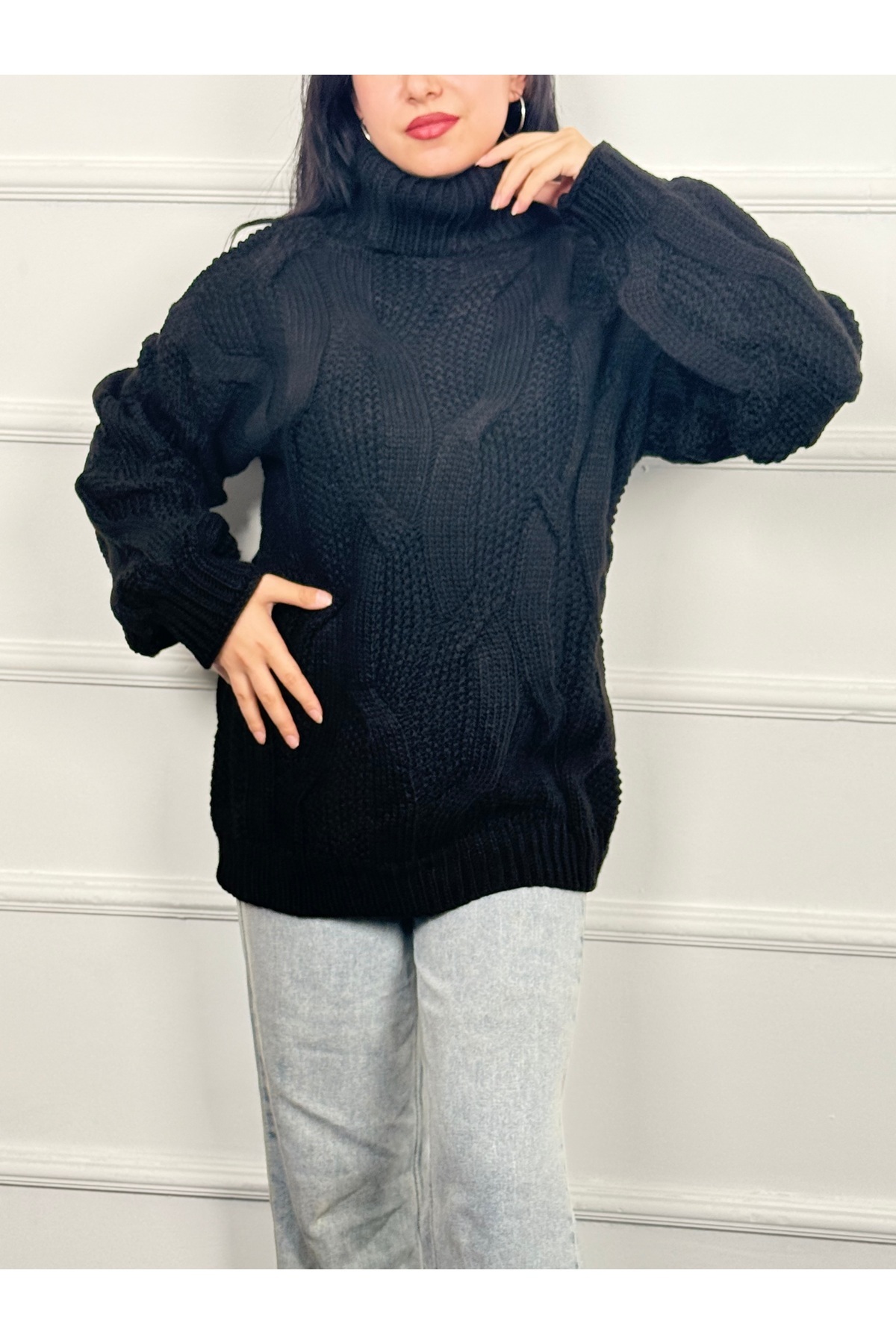 Balıkçı Yaka Saç Örgülü Triko Kazak RC8203 Balıkçı Yaka Saç Örgülü Triko Kazak RC8203 Standart