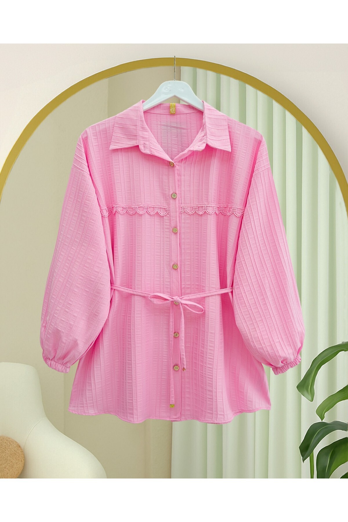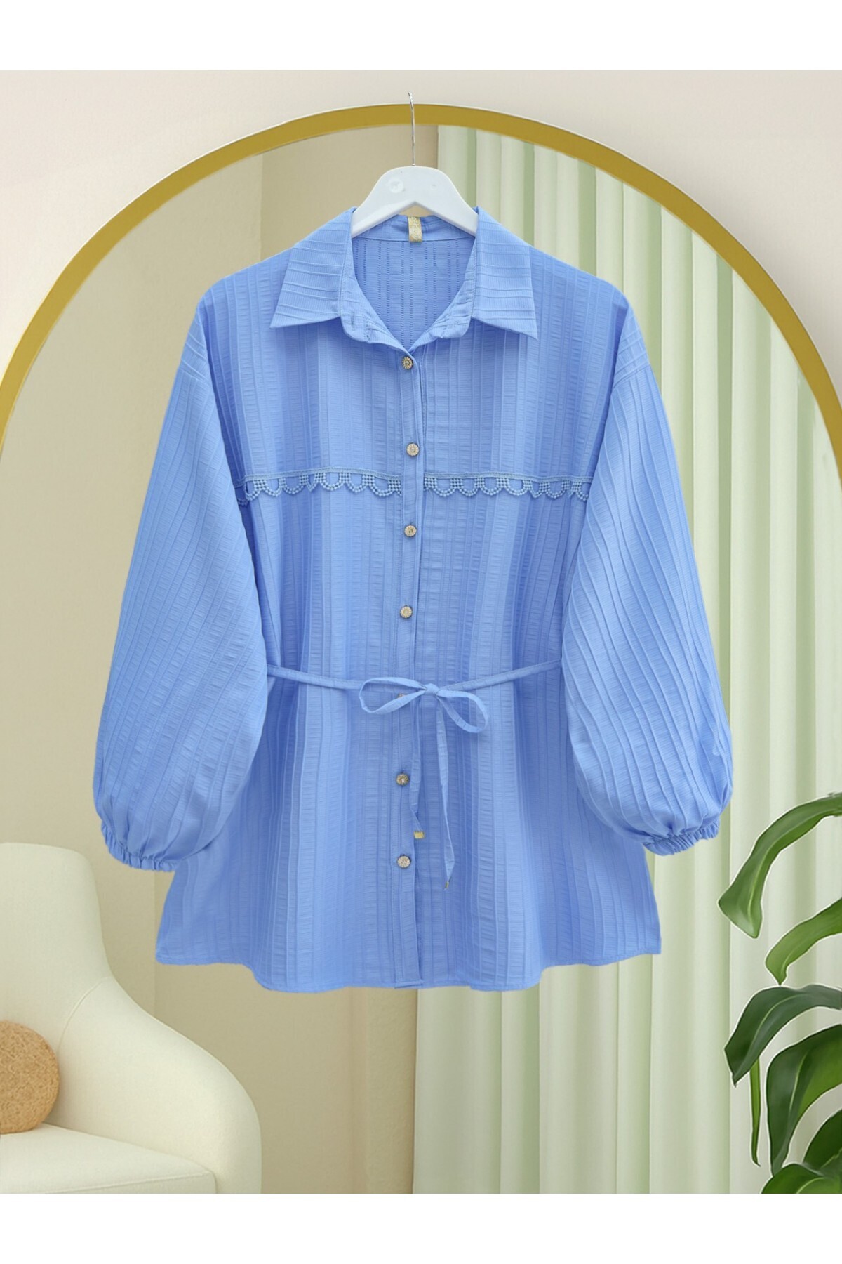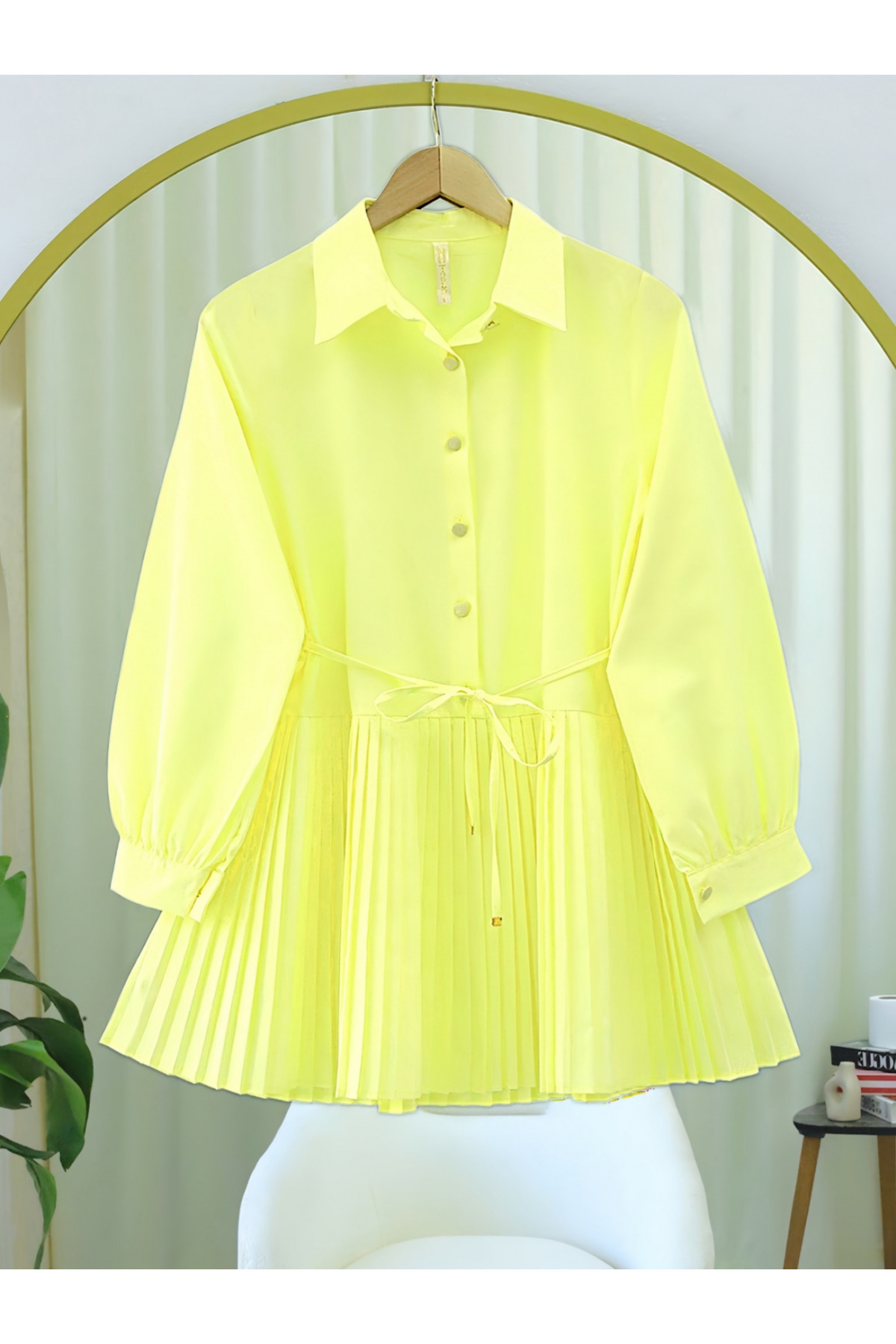 Önü Kurdele Detaylı Düğmeli Önlük Yaka Gömlek -Açık Sarı Önü Kurdele Detaylı Düğmeli Önlük Yaka Gömlek -Açık Sarı TY398-1022 42