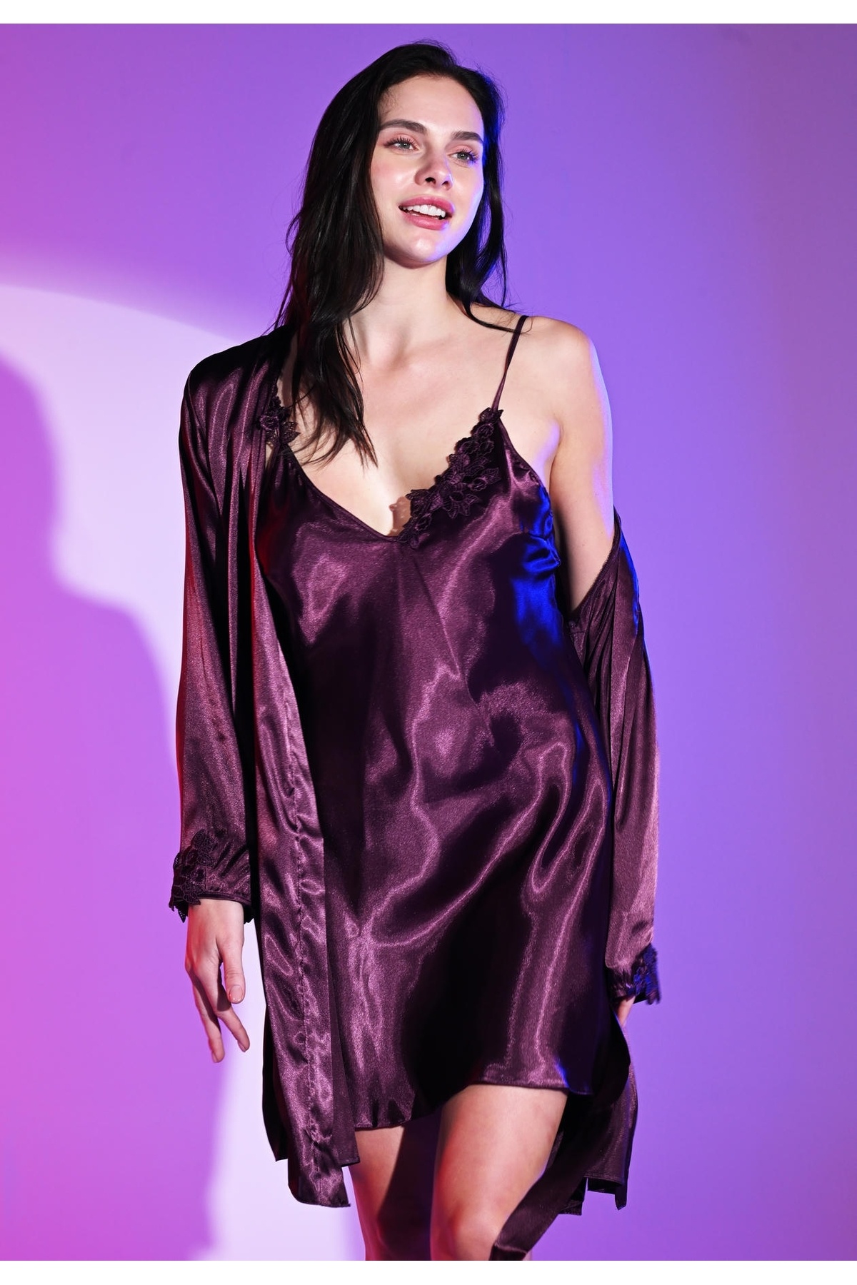 Yeni Sezon Premium Bordo Saten Dantelli Kısa Gecelik Ve Sabahlık Takımı Yeni Sezon Premium Bordo Saten Dantelli Kısa Gecelik Ve Sabahlık Takımı VS7807 XL