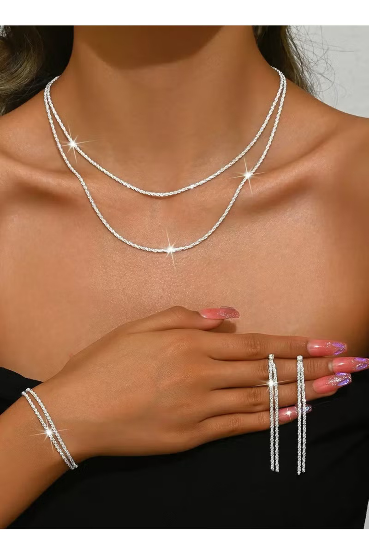 Gümüş Kaplama Silver Damla Taşlı Su Yolu Kolye, Küpe Ve Bileklik Seti Düğün Nişan Davet Gümüş Kaplama Silver Damla Taşlı Su Yolu Kolye, Küpe Ve Bileklik Seti Düğün Nişan Davet eac123 تک سایز