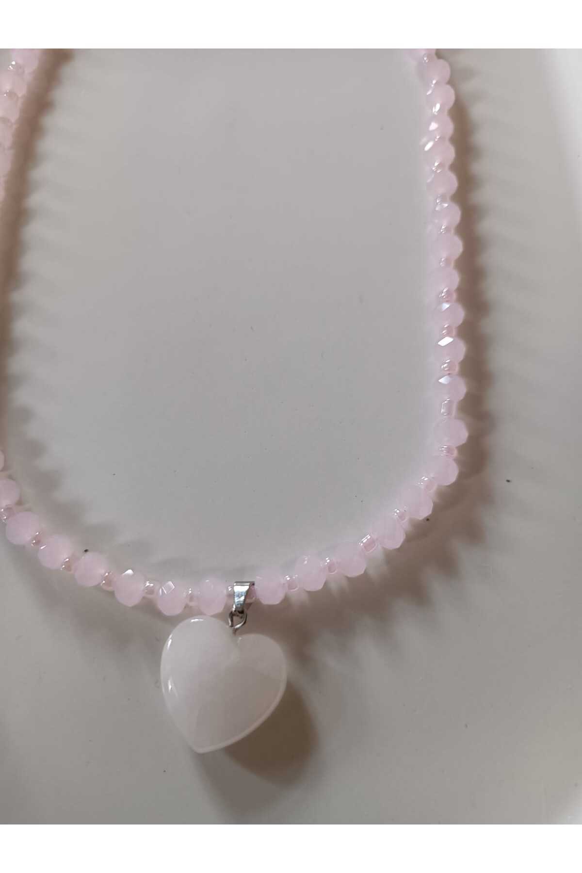 Kalp Uçlu Pudra Kristal Boncuk Gümüş Kolye Kalp Uçlu Pudra Kristal Boncuk Gümüş Kolye KUPKBGK-111 38 cm