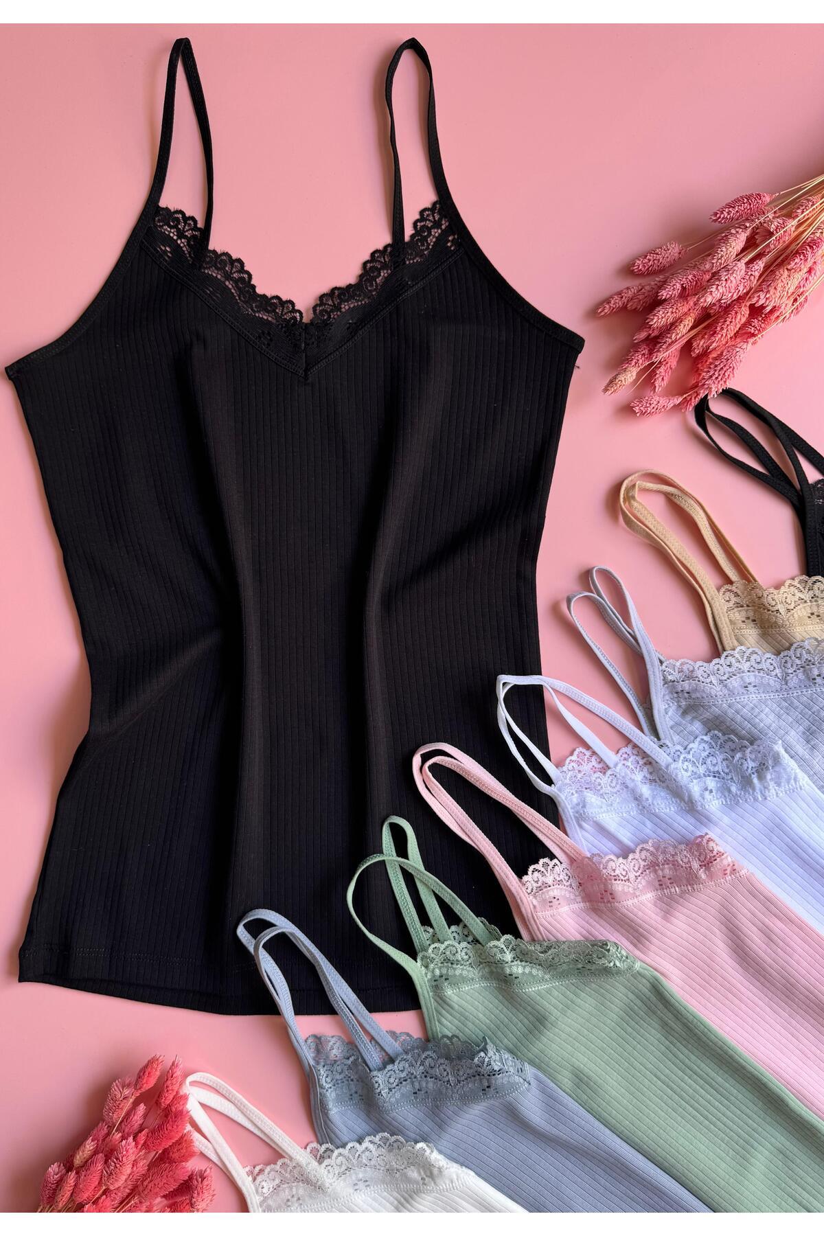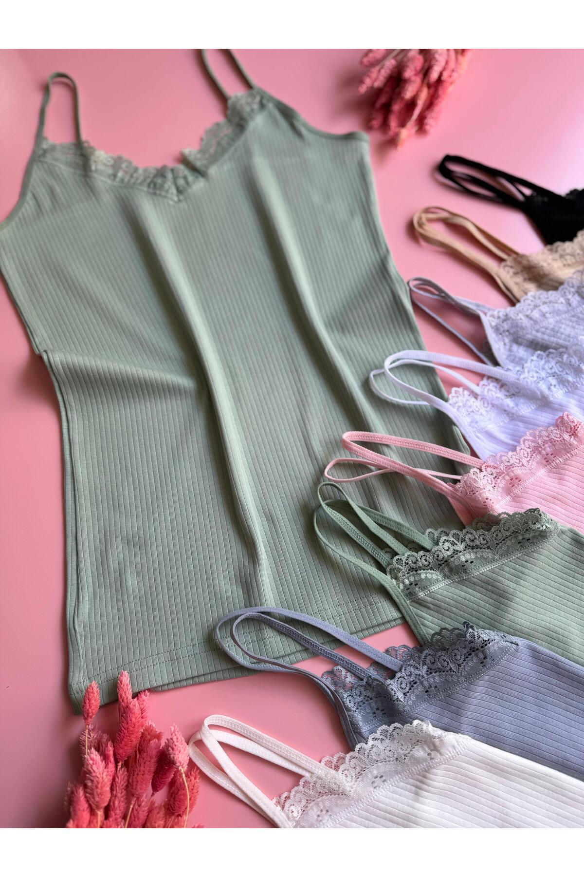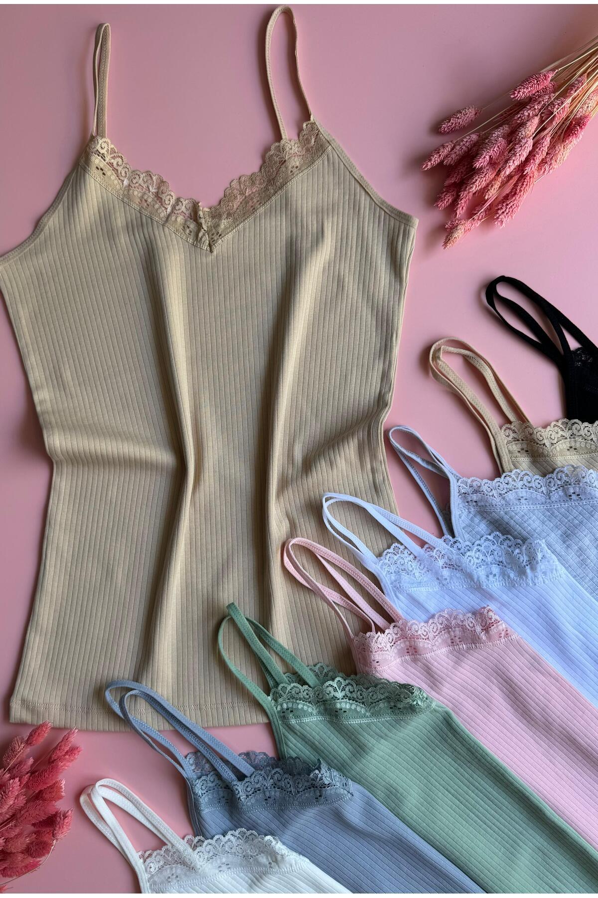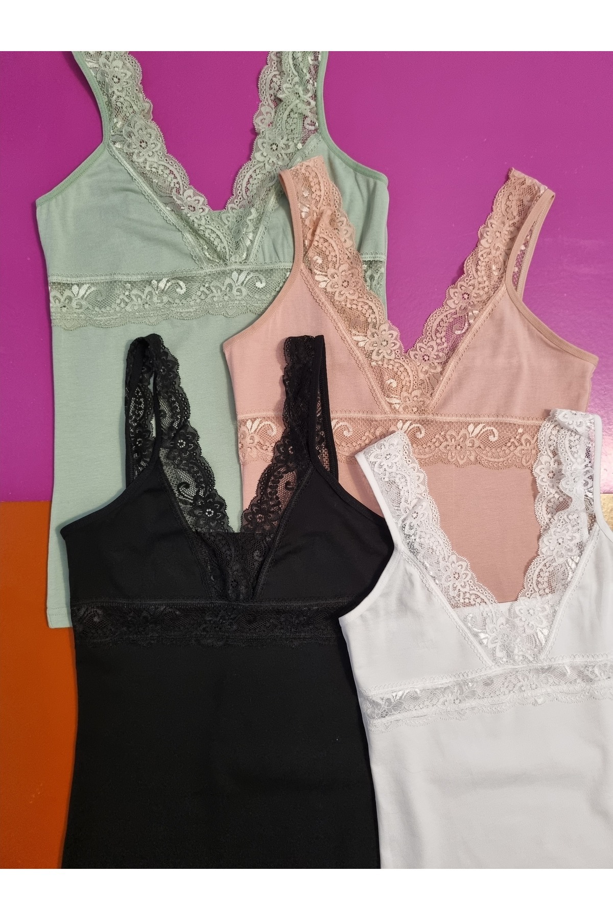 Dantelli | 8'li Ip Askılı Pamuklu, Likralı Fitilli Kadın Atlet Seti Dantelli | 8'li Ip Askılı Pamuklu, Likralı Fitilli Kadın Atlet Seti Ribana Atlet 2XL