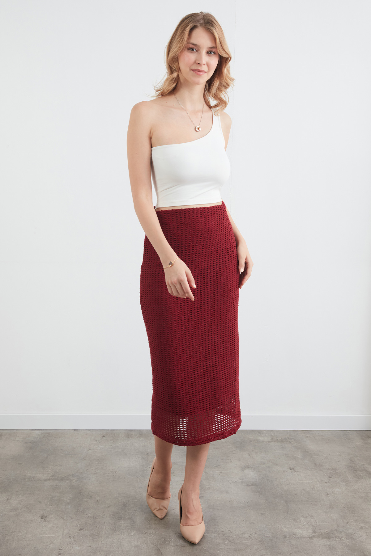 Beli Lastikli Çizgili Triko Etek Beli Lastikli Çizgili Triko Etek 25YGB7584128930 L