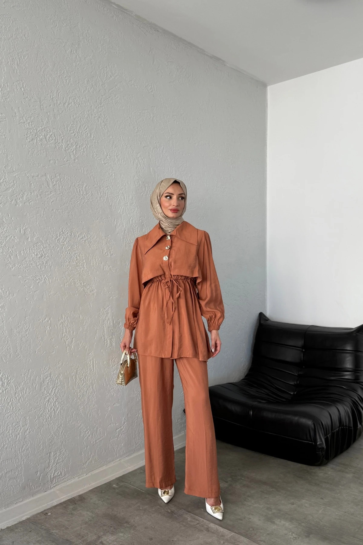 BELİ BAĞCIKLI GENİŞ YAKA PANTOLONLU İKİLİ TAKIM BELİ BAĞCIKLI GENİŞ YAKA PANTOLONLU İKİLİ TAKIM ARUA1 L/XL