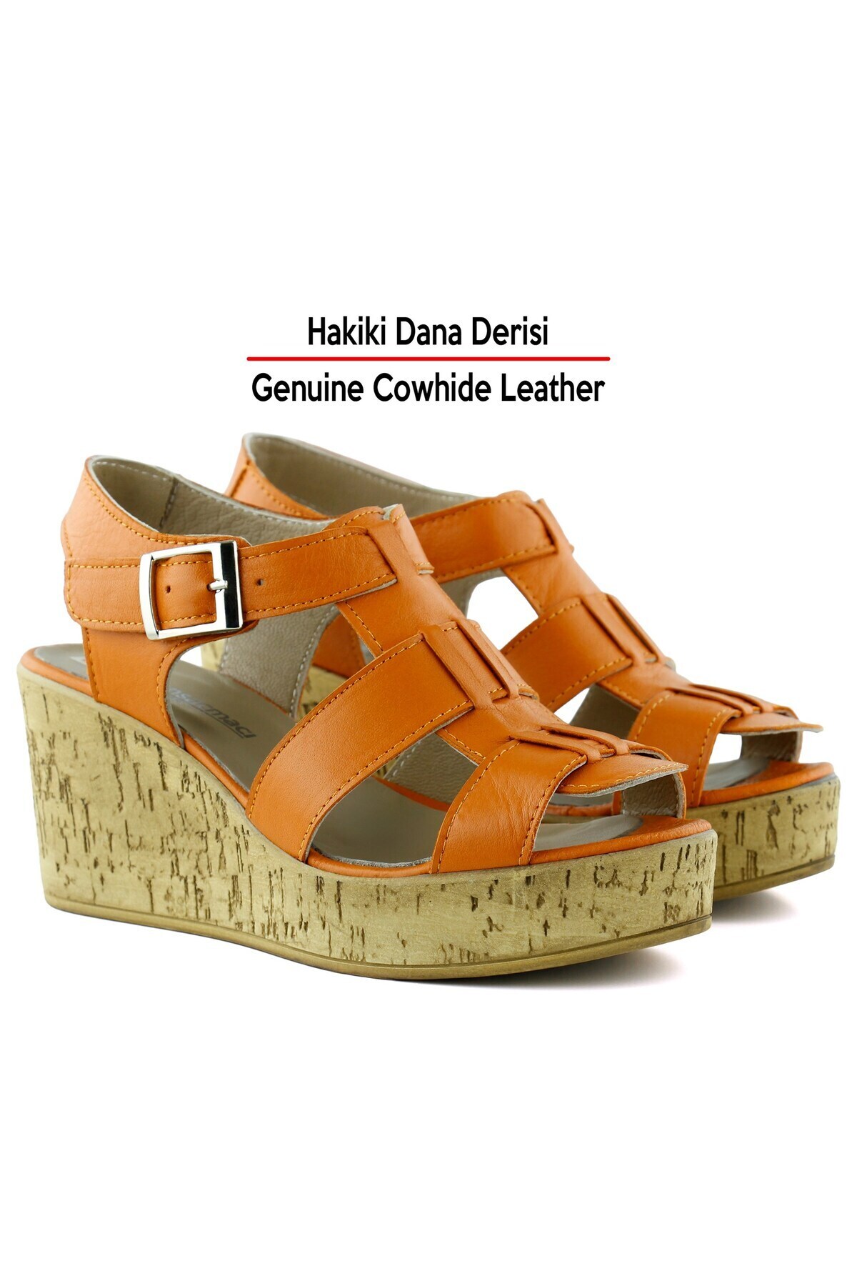 Xena Turuncu Hakiki Dana Derisi Mantar Taban Görünümlü Dolgu Topuklu Gladyatör Sandalet Xena Turuncu Hakiki Dana Derisi Mantar Taban Görünümlü Dolgu Topuklu Gladyatör Sandalet 37526S000163 40