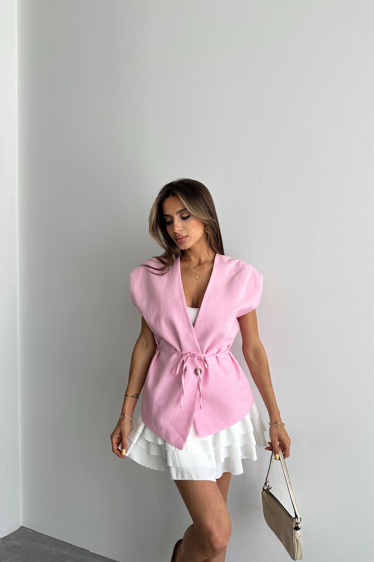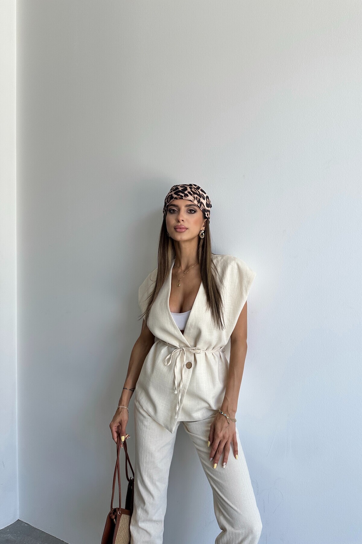 Kadın Krem İp Bağlamalı Astarlı Keten Yelek Kadın Krem İp Bağlamalı Astarlı Keten Yelek CO632 XL