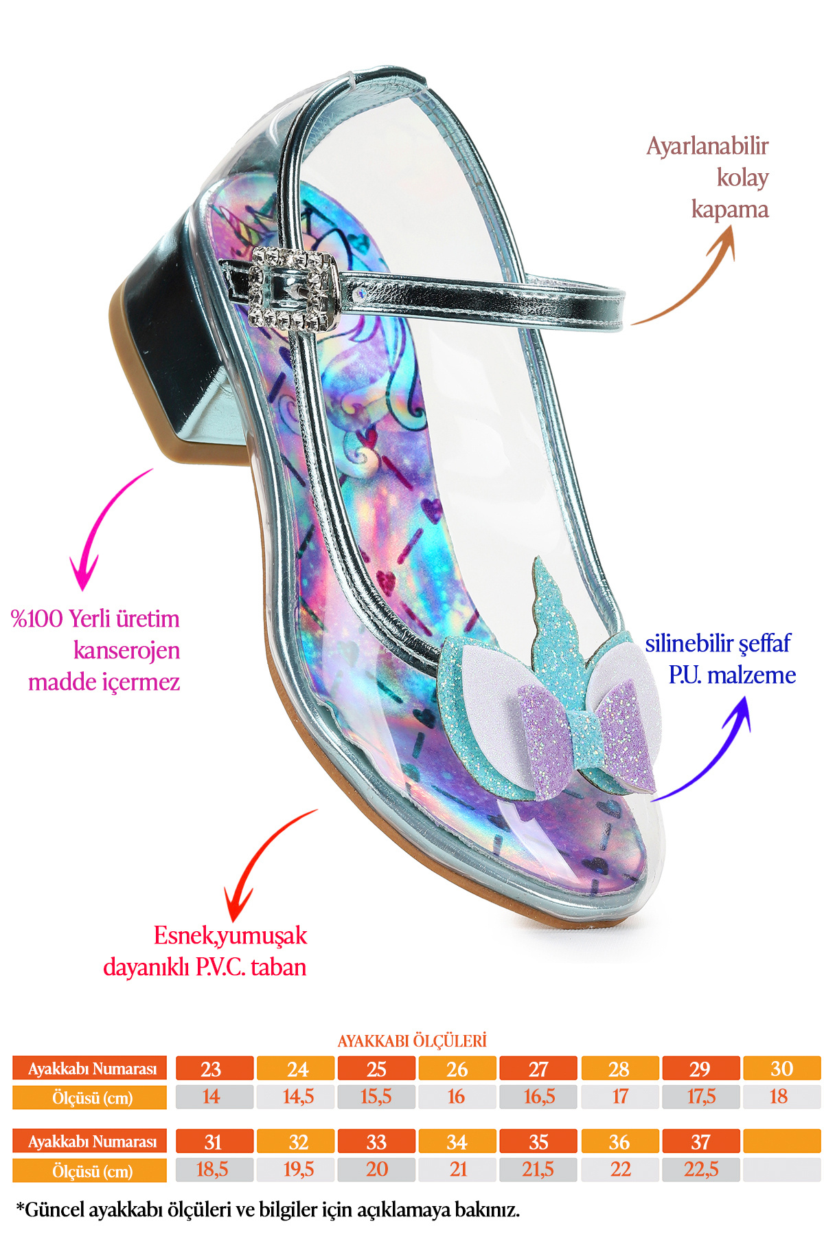 Unicorn Kız Çocuk Topuklu Abiye Şeffaf Ayakkabı Unicorn Kız Çocuk Topuklu Abiye Şeffaf Ayakkabı KR25YGELKIK000001 37