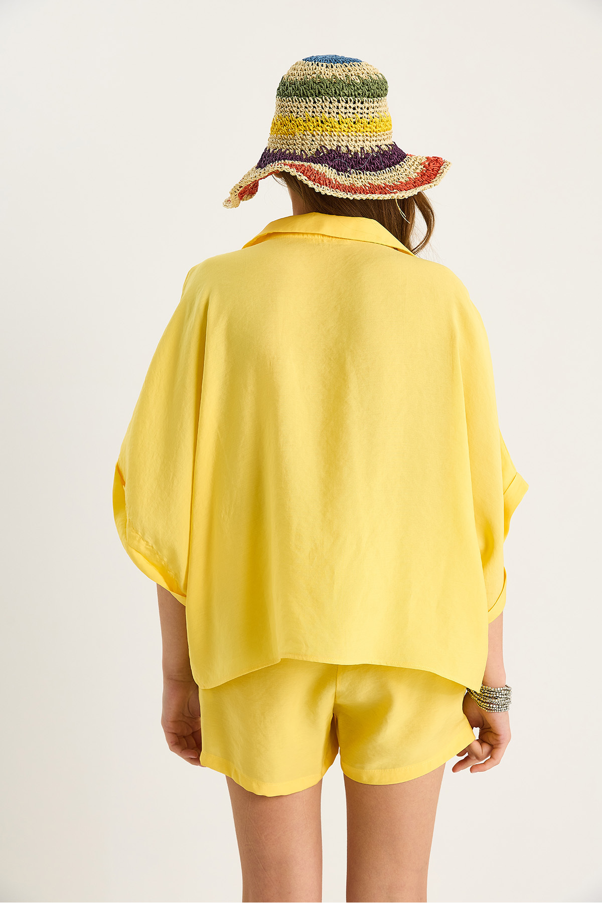 Kadın Yarasa Kol Oversize Gömlek Hasır Kemerli Şort Modal Takım 4010 60283476 Kadın Yarasa Kol Oversize Gömlek Hasır Kemerli Şort Modal Takım 4010 60283476 L