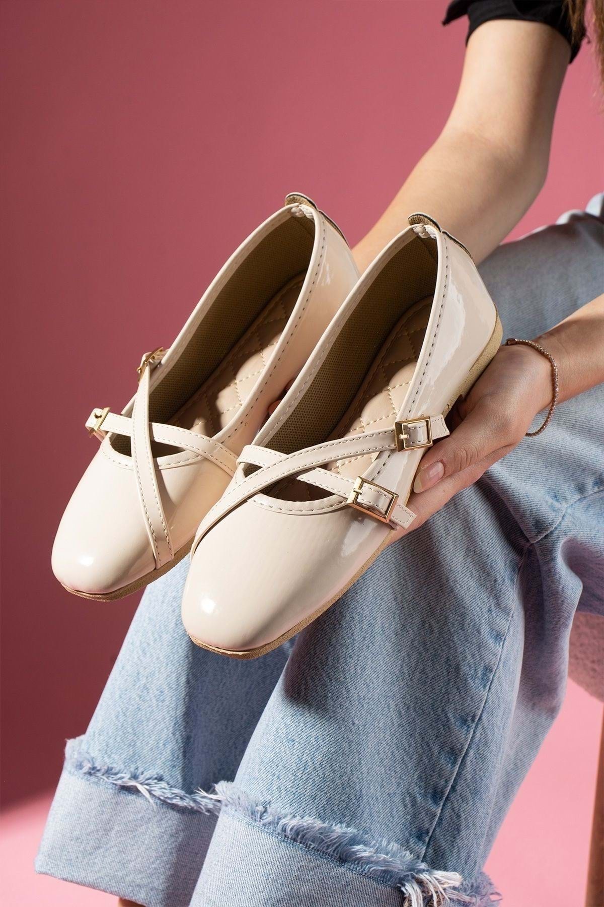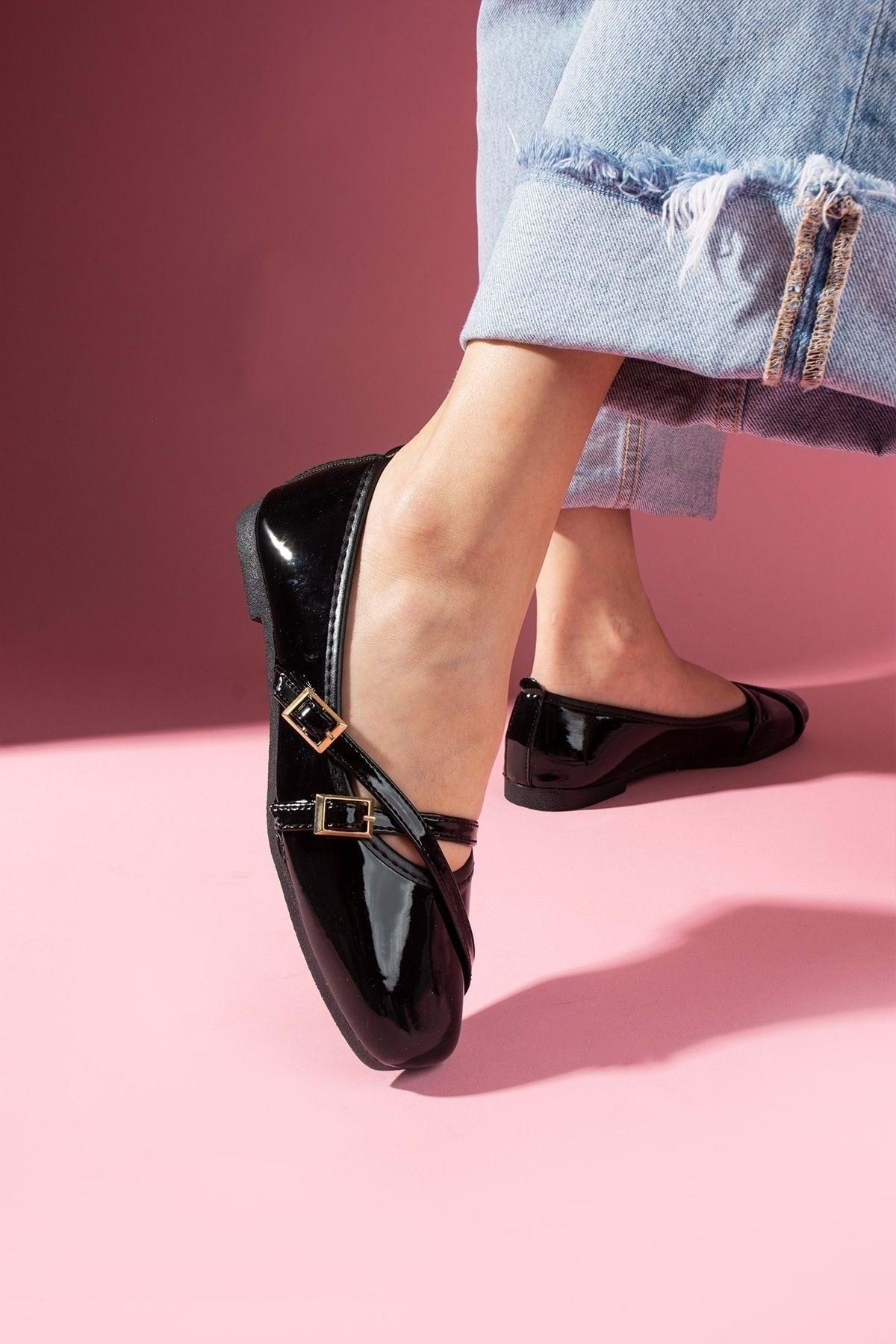 Kadın Rugan Çapraz Biye ve Toka Detaylı Babet Kadın Rugan Çapraz Biye ve Toka Detaylı Babet AC01226 40