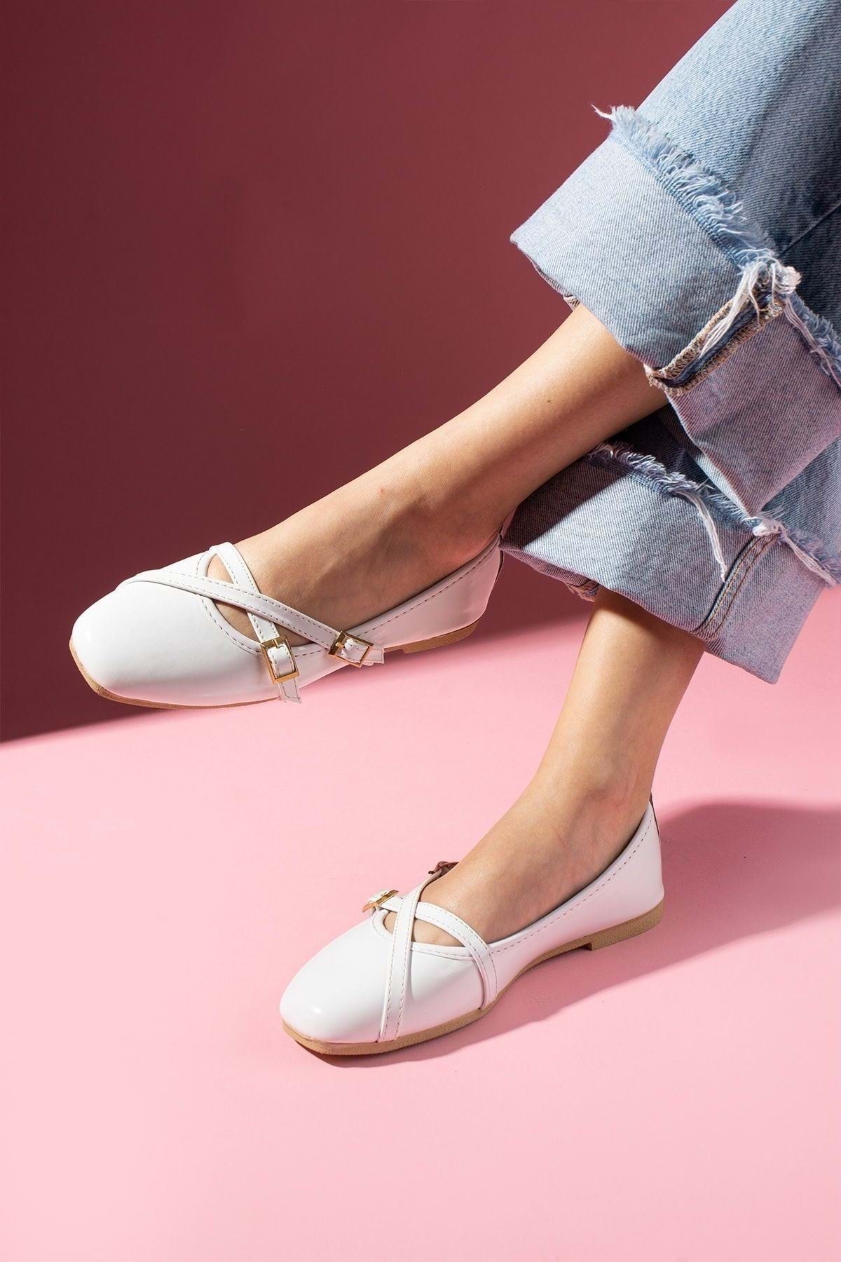 Kadın Rugan Çapraz Biye ve Toka Detaylı Babet Kadın Rugan Çapraz Biye ve Toka Detaylı Babet AC01226 40