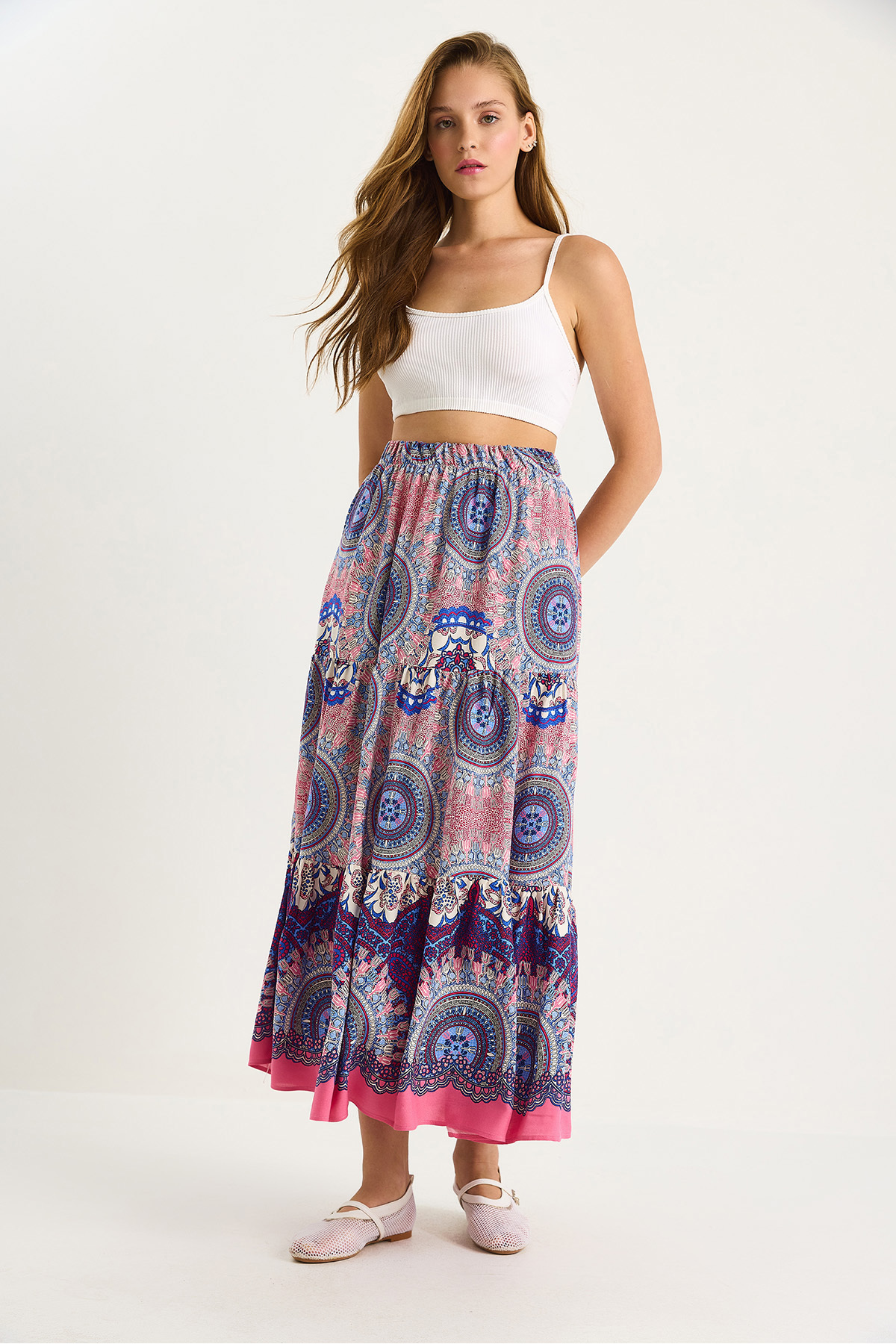 Kadın Desenli Beli Lastikli Uzun Vsikon Etek 8045 60283479 Kadın Desenli Beli Lastikli Uzun Vsikon Etek 8045 60283479 42