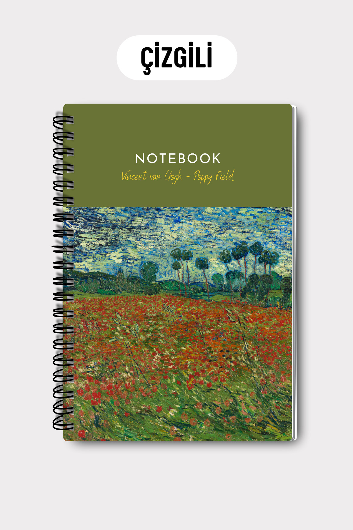 Van Gogh A5 Spiralli Çizgili Okul Defteri, 50 Yaprak 100 Sayfa, Karton Kapak Not Defteri, Gelincik Van Gogh A5 Spiralli Çizgili Okul Defteri, 50 Yaprak 100 Sayfa, Karton Kapak Not Defteri, Gelincik ELD-OD-00501 تک سایز