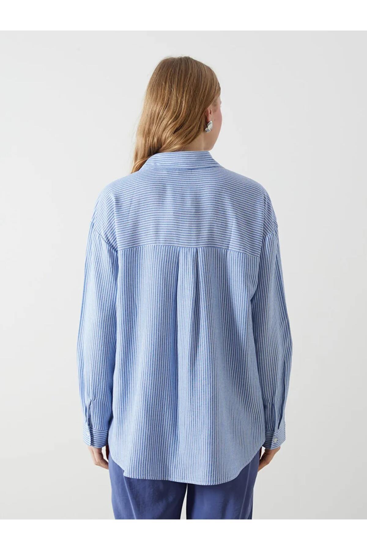 XSIDE Mavi Çizgili Keten Karışımlı Oversize Kadın Gömlek XSIDE Mavi Çizgili Keten Karışımlı Oversize Kadın Gömlek S52683Z8 XS-S
