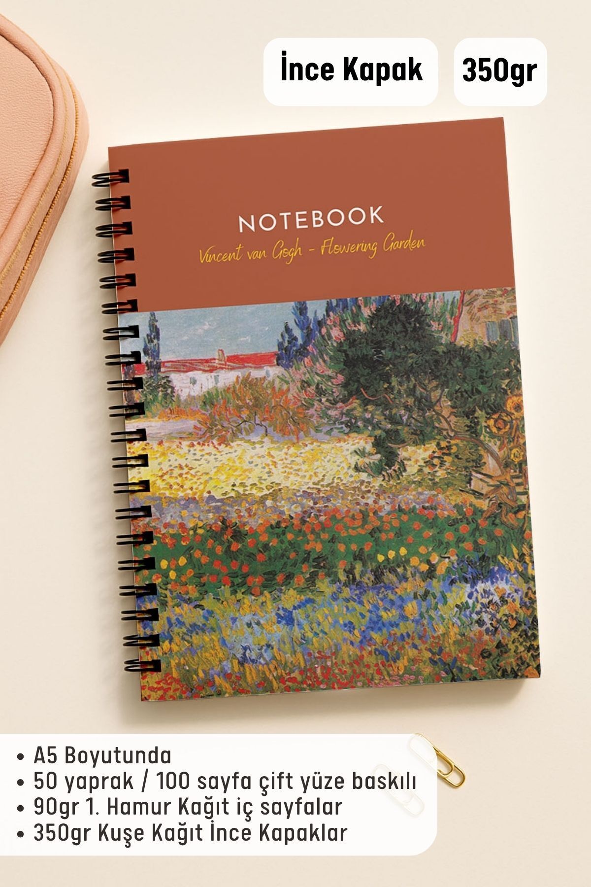 Van Gogh A5 Spiralli Çizgisiz Okul Defteri, 50 Yaprak 100 Sayfa, Karton Kapak Not Defteri, Bahçe Van Gogh A5 Spiralli Çizgisiz Okul Defteri, 50 Yaprak 100 Sayfa, Karton Kapak Not Defteri, Bahçe ELD-OD-00503 تک سایز