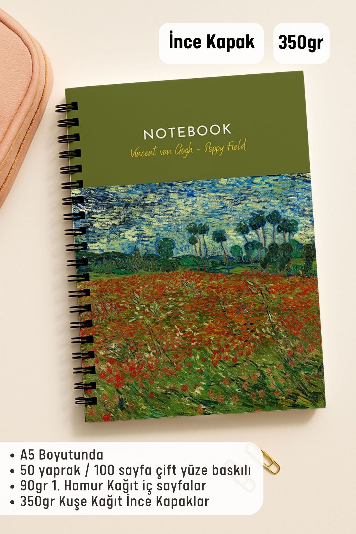 Van Gogh A5 Spiralli Noktalı Okul Defteri, 50 Yaprak 100 Sayfa, Karton Kapak Not Defteri, Gelincik Van Gogh A5 Spiralli Noktalı Okul Defteri, 50 Yaprak 100 Sayfa, Karton Kapak Not Defteri, Gelincik ELD-OD-00504 تک سایز