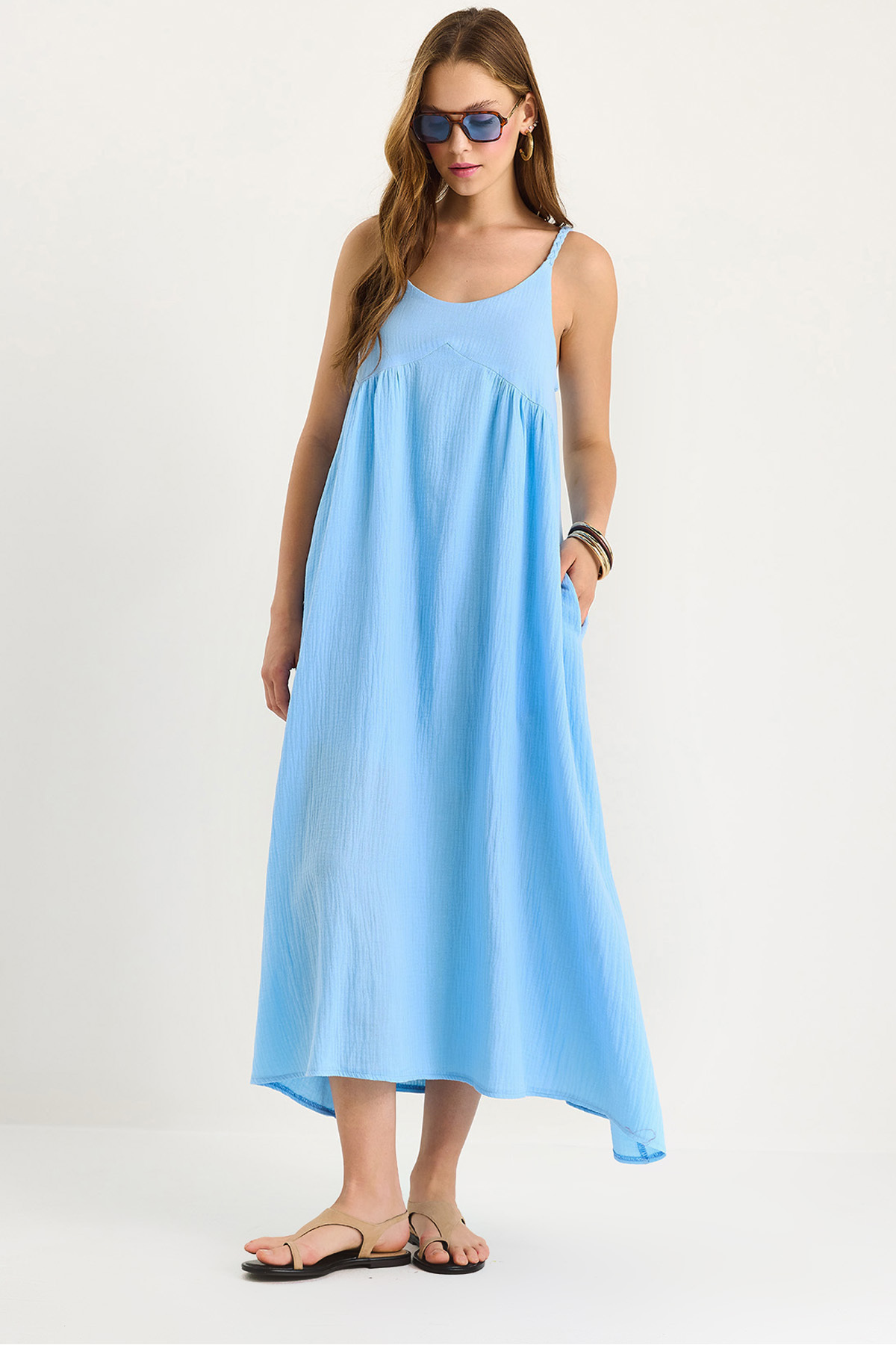 Kadın U Yaka Askılı Fitilli Kloş Elbise 477 60283393 Kadın U Yaka Askılı Fitilli Kloş Elbise 477 60283393 L