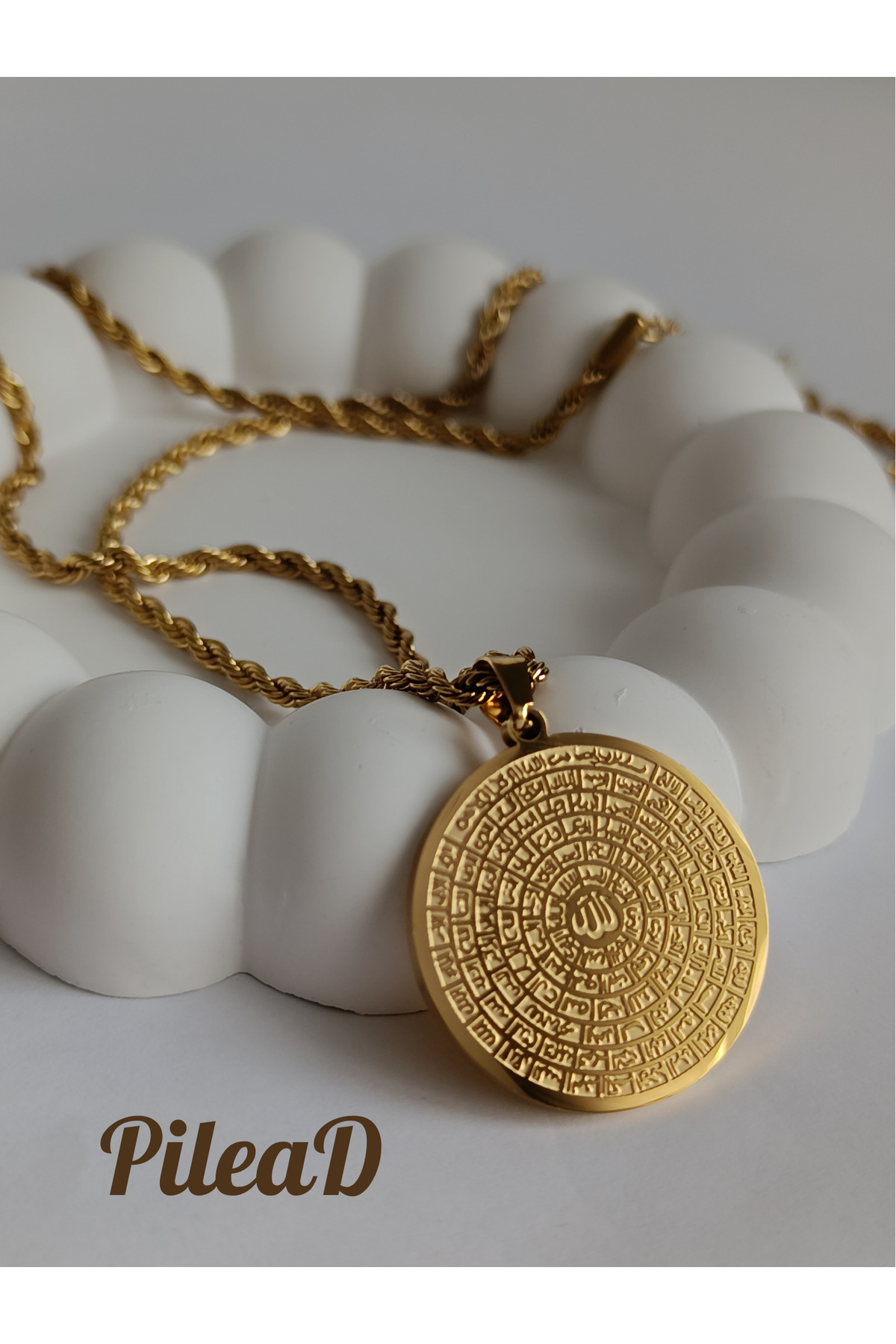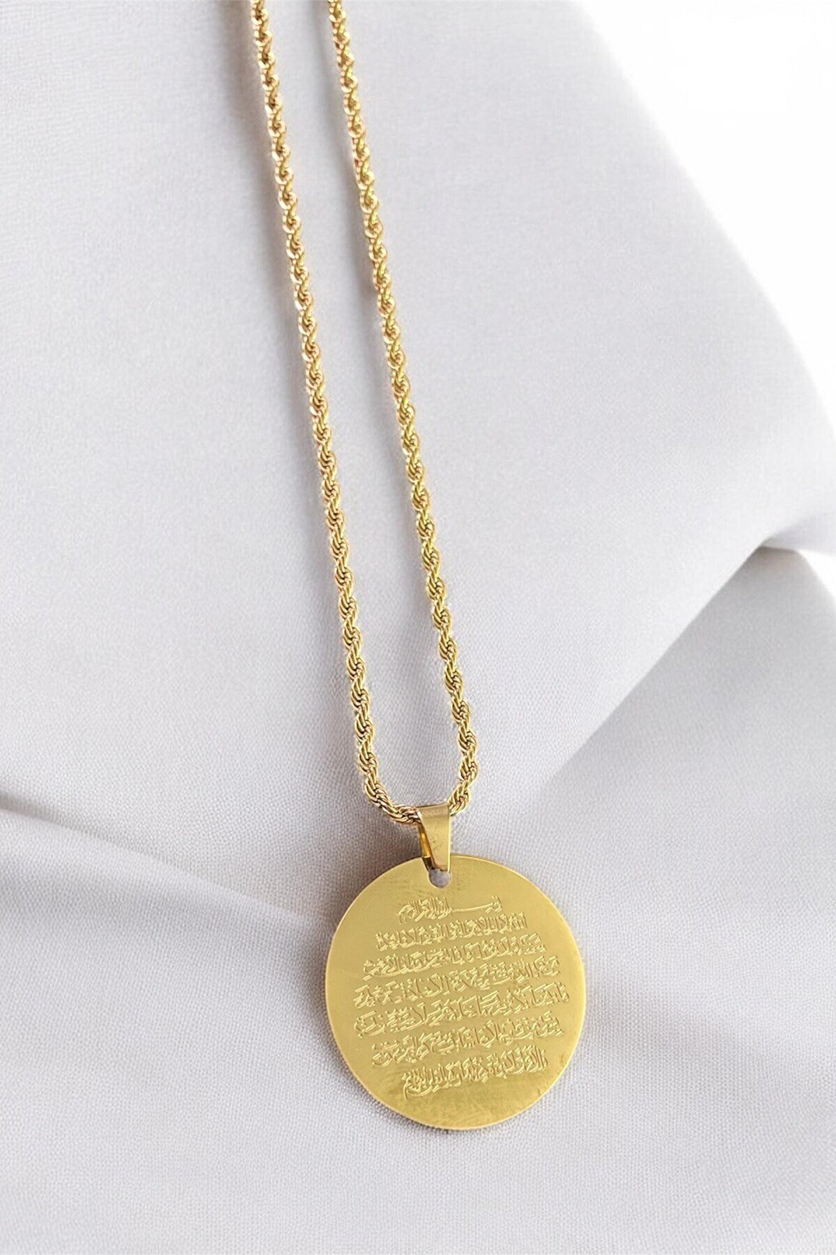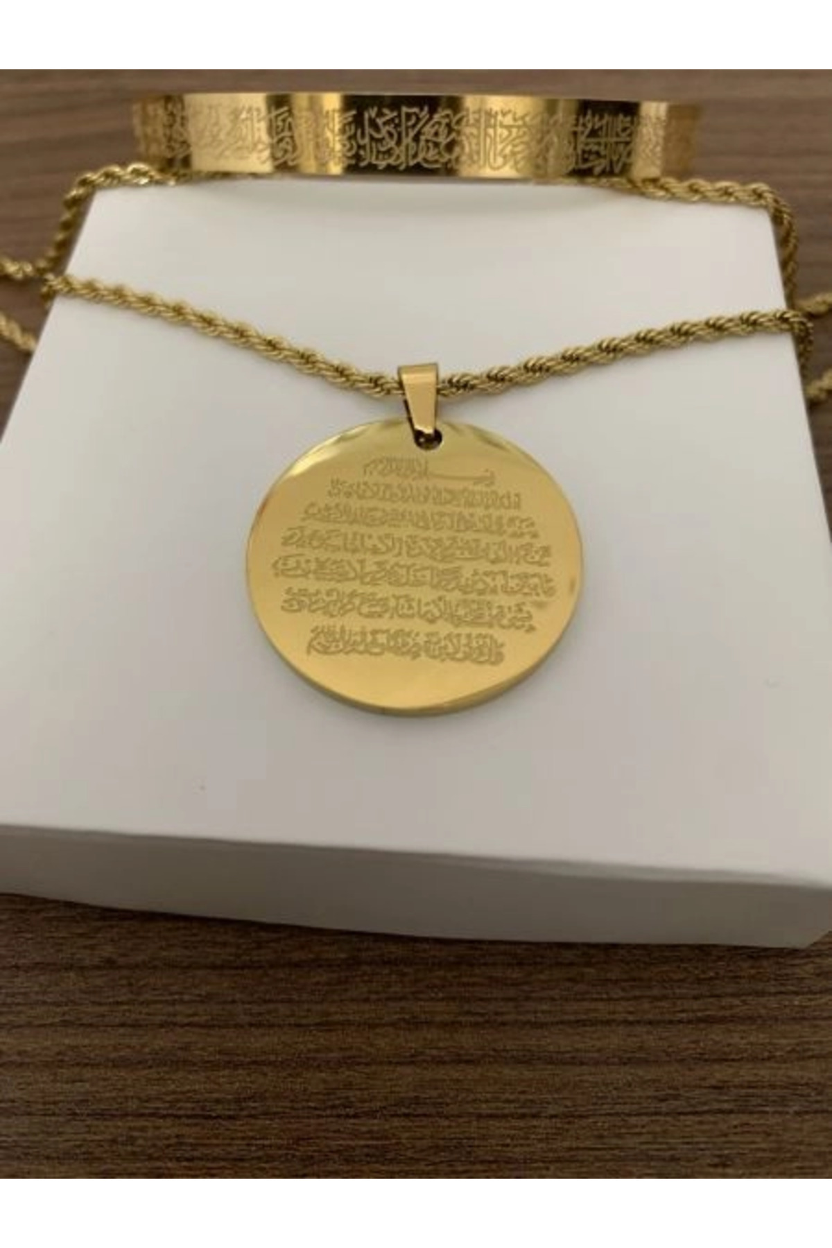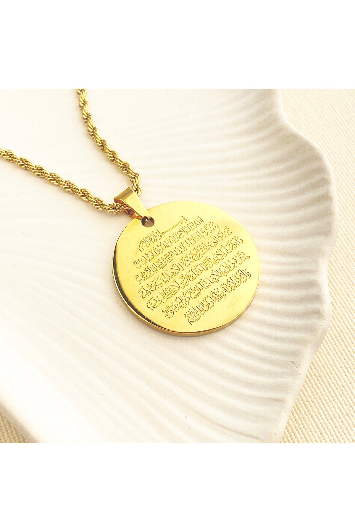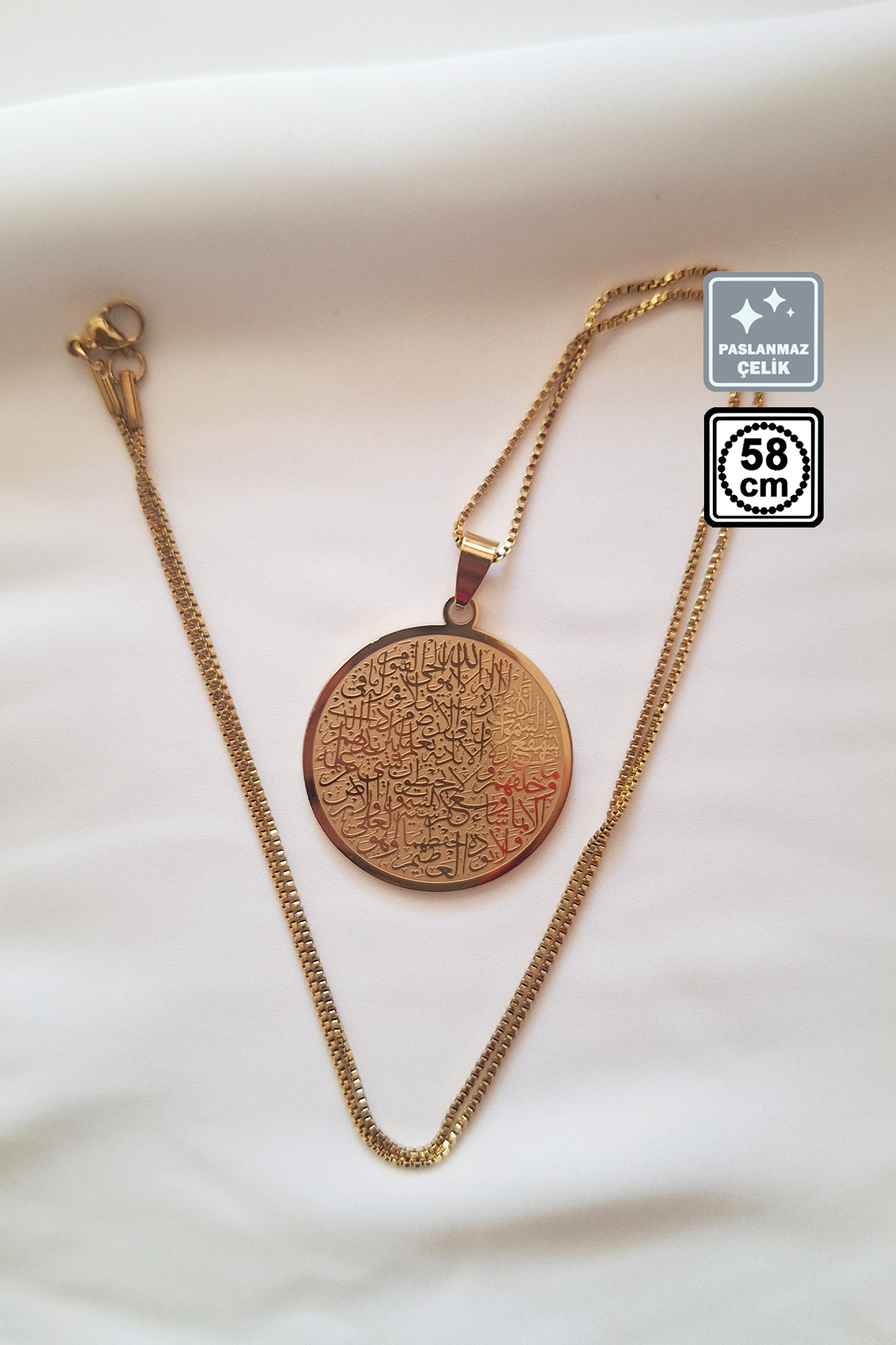 Paslanmaz Çelik Altın Renk Kadın Ayetel Kürsi Kolye Paslanmaz Çelik Altın Renk Kadın Ayetel Kürsi Kolye Çk155 تک سایز