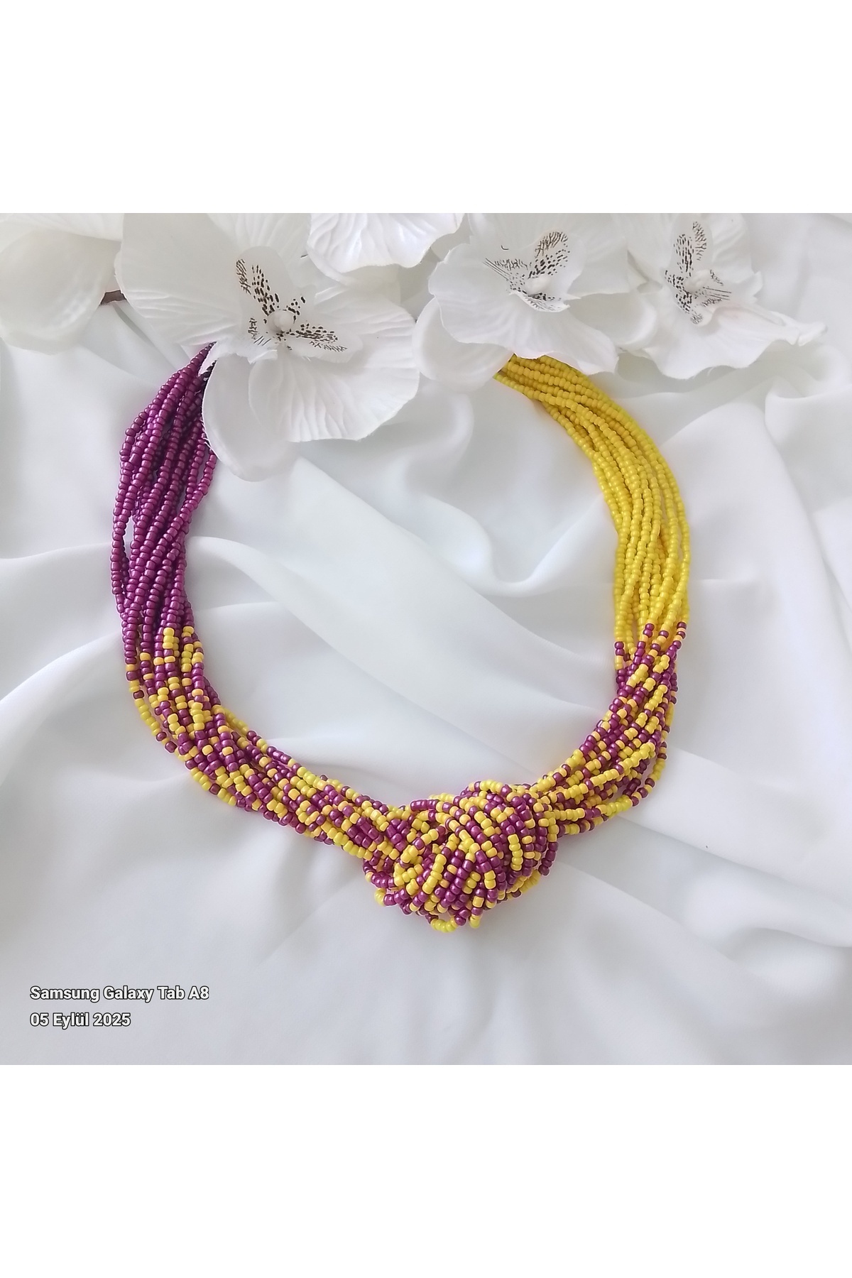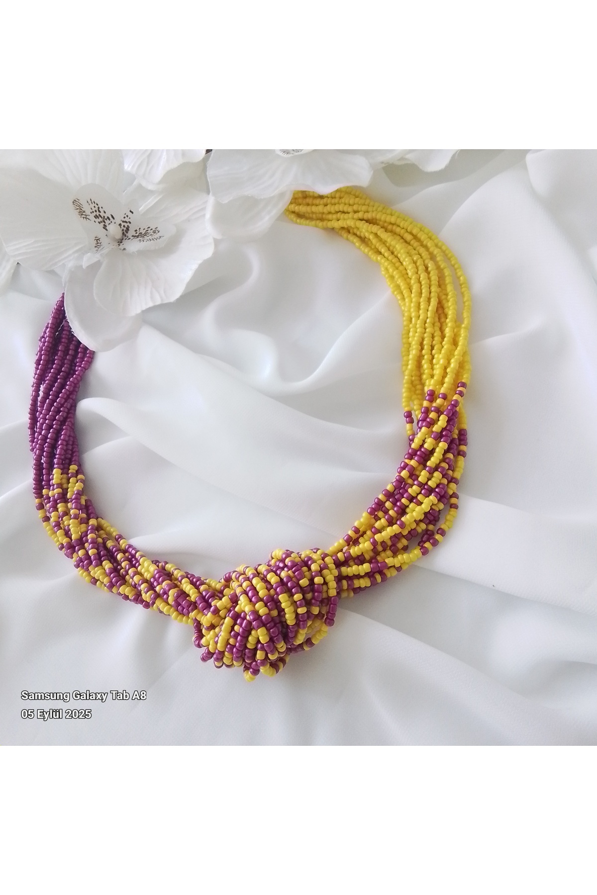 LİLA SARI KUM BONCUK ÇOKLU KOLYE LİLA SARI KUM BONCUK ÇOKLU KOLYE İP-K0249 45 cm