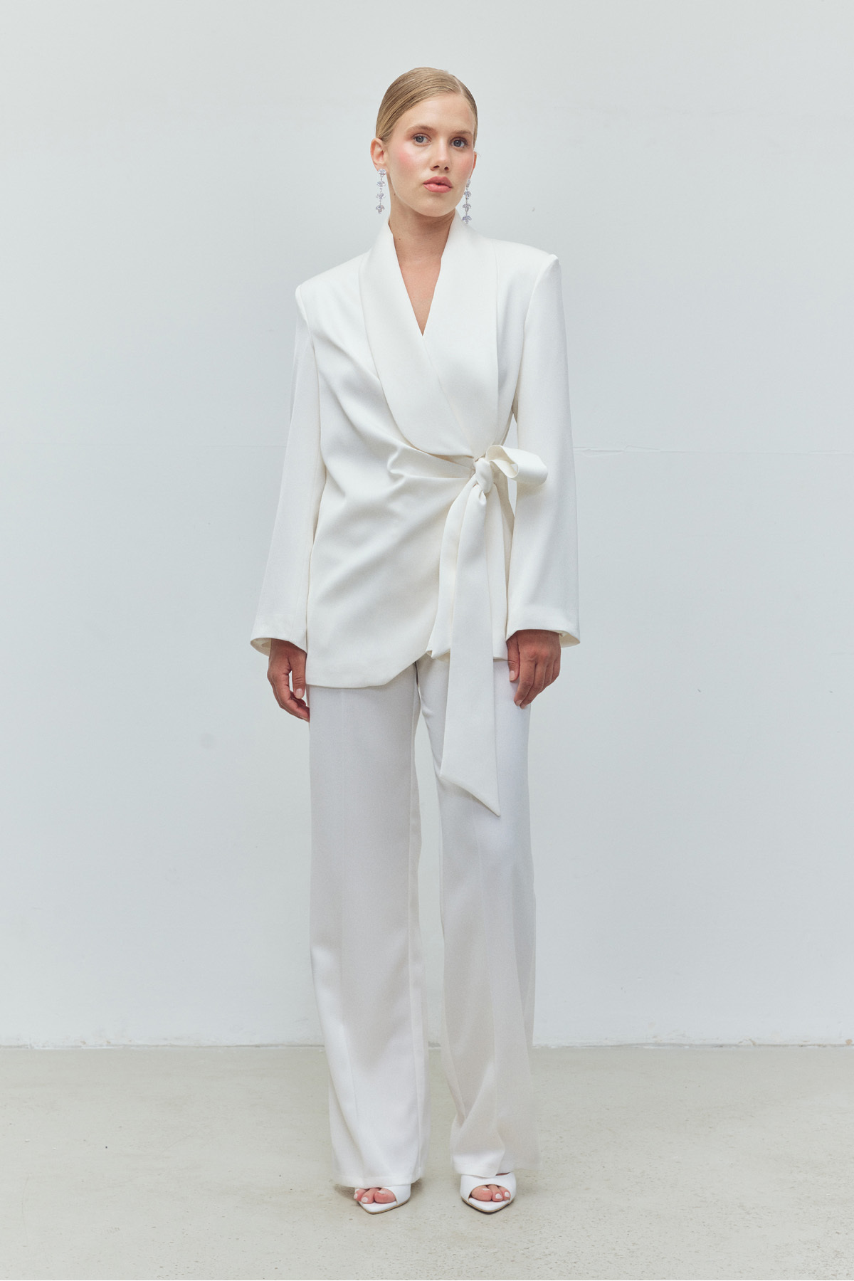 Beyaz Saten Otriş Tüylü Kruvaze Drapeli Ceket Pantolon Alt-Üst Takım Beyaz Saten Otriş Tüylü Kruvaze Drapeli Ceket Pantolon Alt-Üst Takım LE773 2XL
