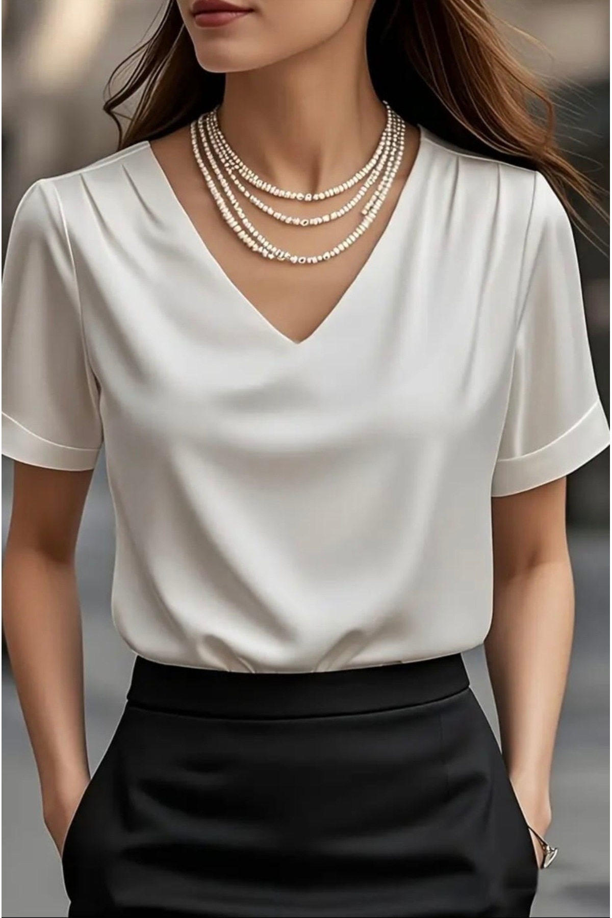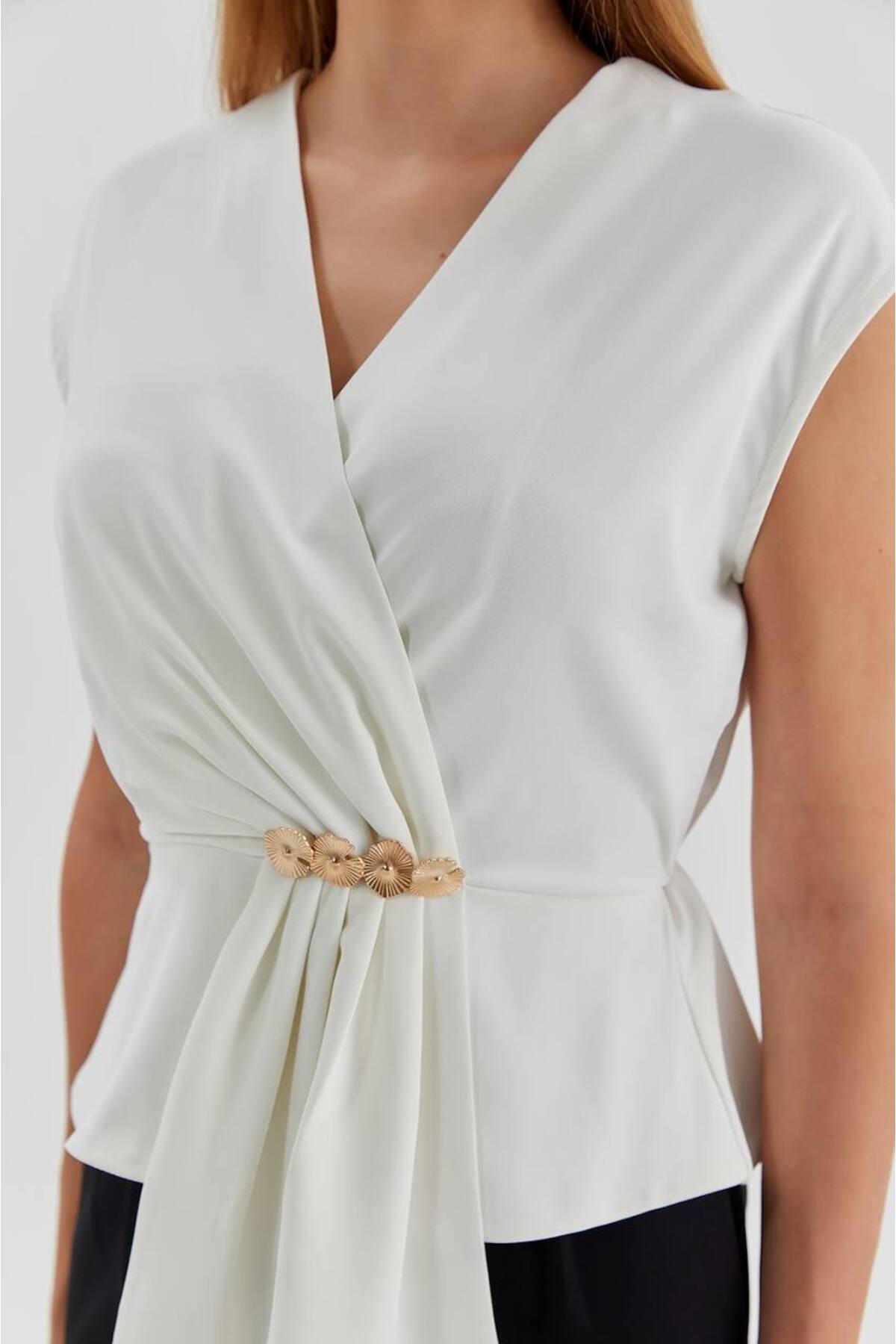 Düğme Detaylı Kruvaze Yaka Şık Bluz Düğme Detaylı Kruvaze Yaka Şık Bluz Ddjs XL