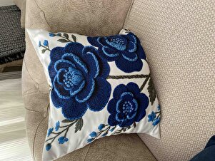 3D Nakış Görünümlü Lacivert Çiçek Desenli Dijital Baskılı Dekoratif Kırlent Kılıfı 3D Nakış Görünümlü Lacivert Çiçek Desenli Dijital Baskılı Dekoratif Kırlent Kılıfı PNCETT 43 x 43