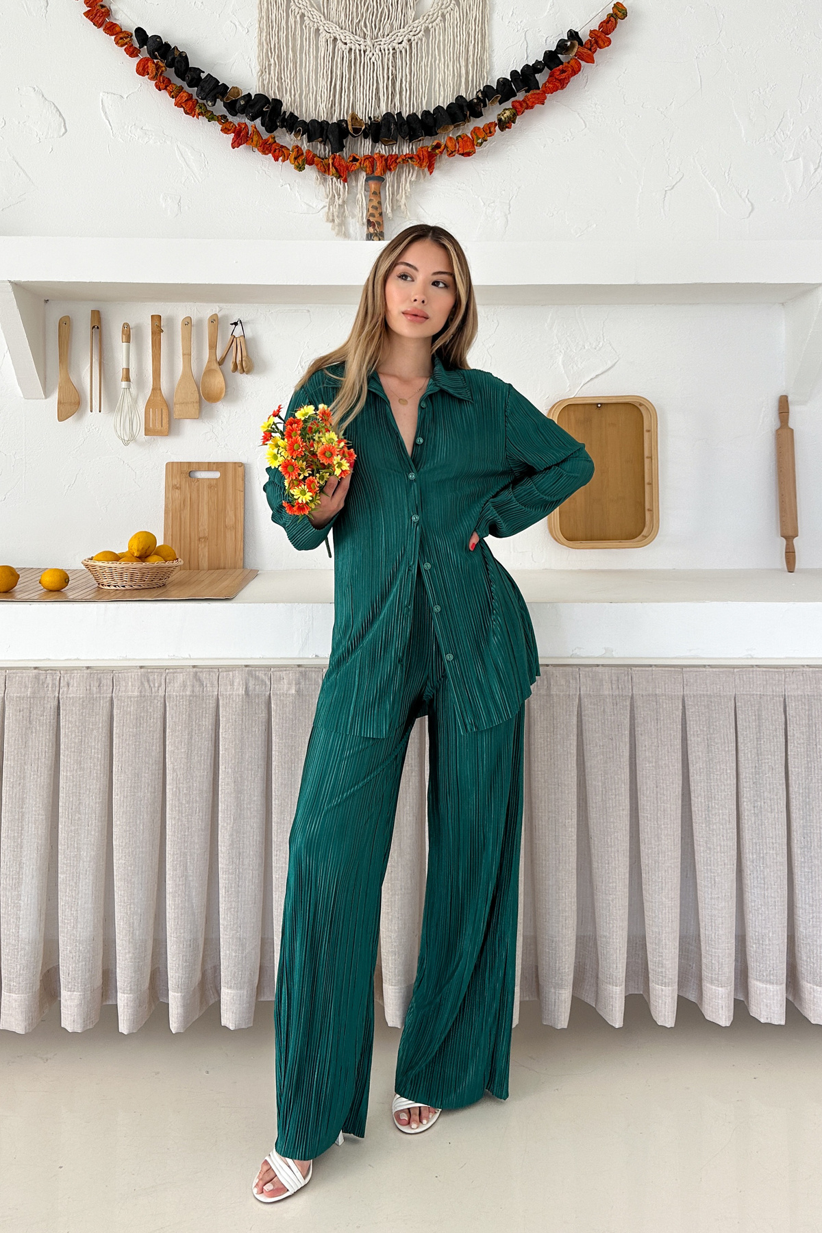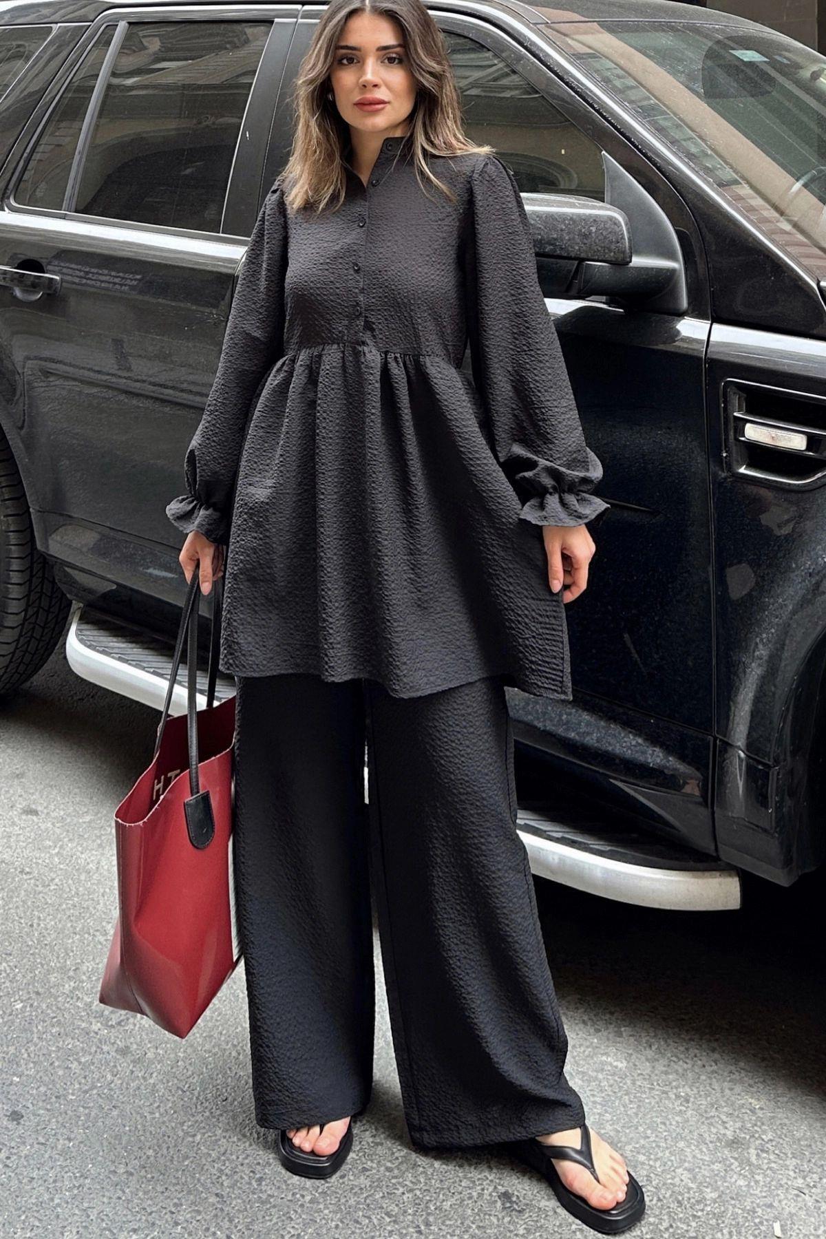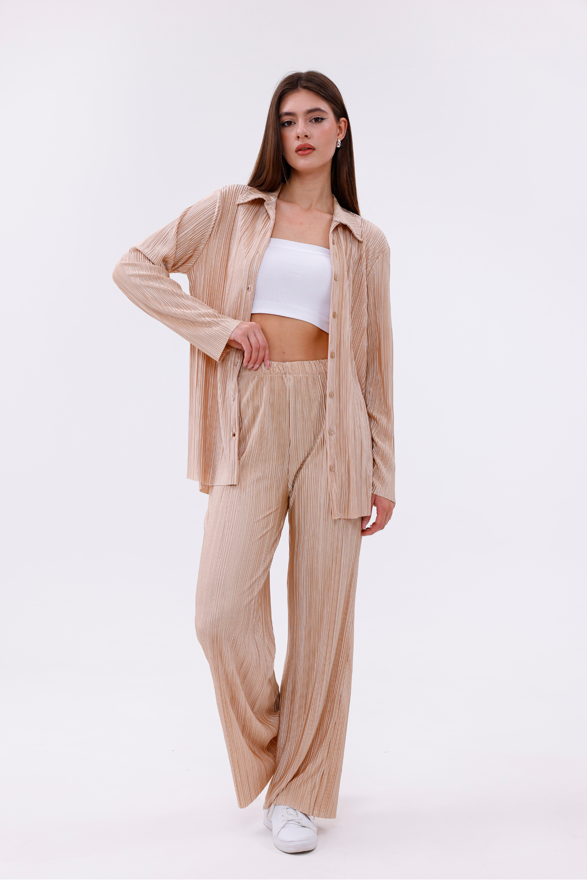 Kadın Fitilli Krinkıl Kumaş Pantalon Gömlek Takım Kadın Fitilli Krinkıl Kumaş Pantalon Gömlek Takım vera0001 2XL