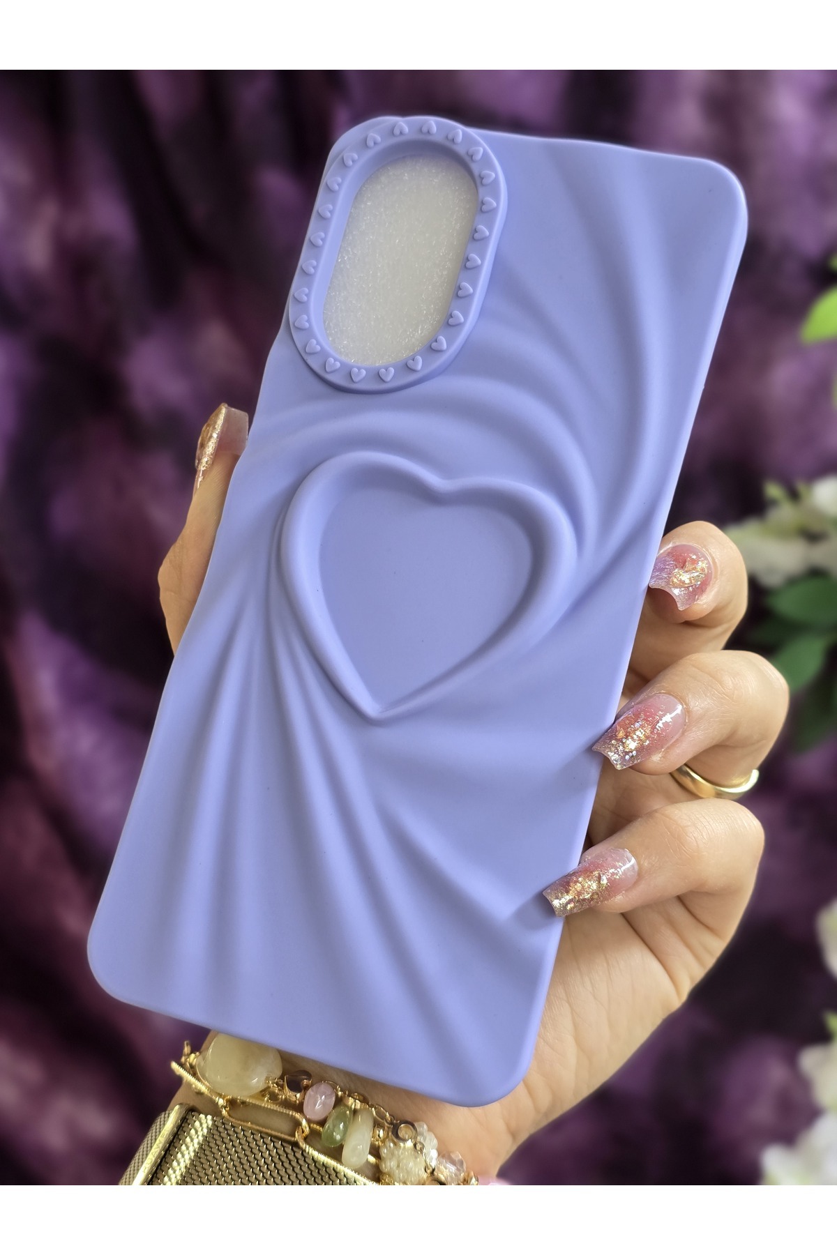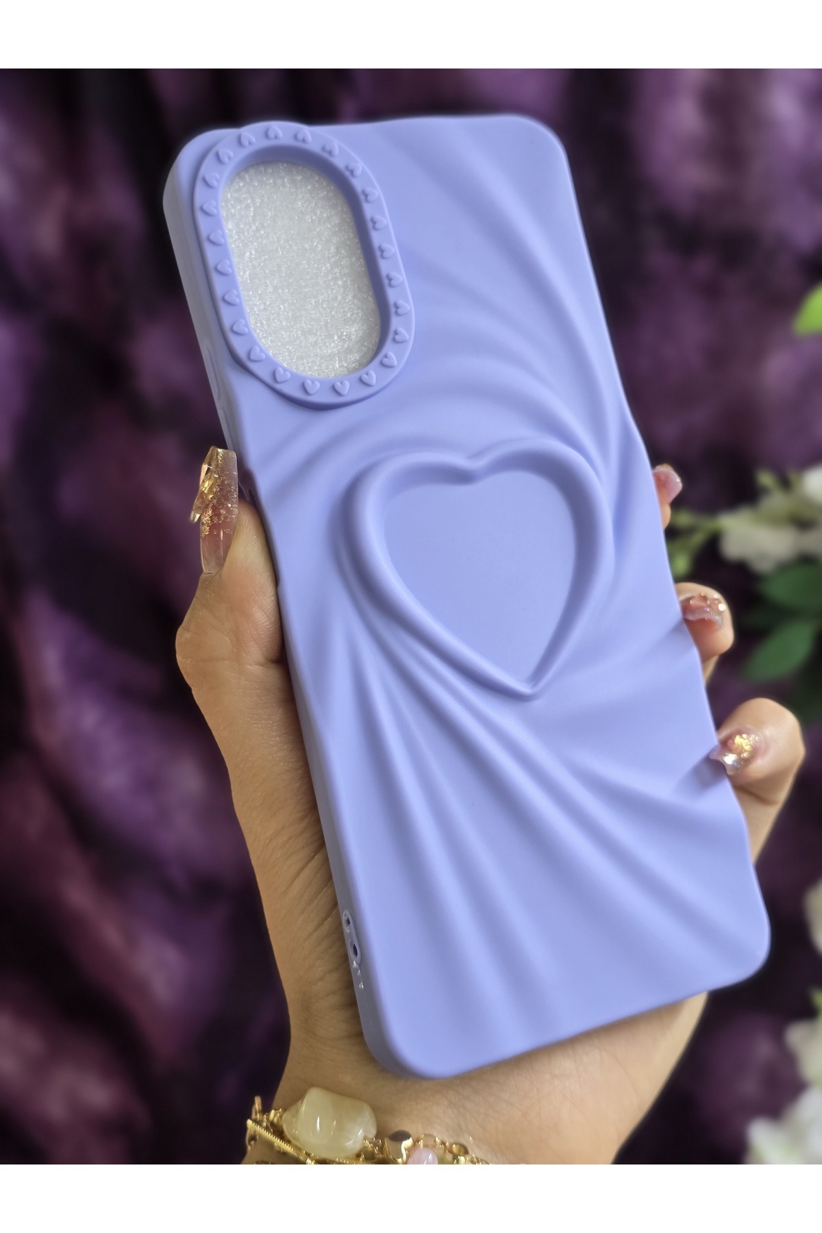 OPPO A38 Uyumlu 3D Kalpli Lila Silikon Kılıf OPPO A38 Uyumlu 3D Kalpli Lila Silikon Kılıf oppoa38mg تک سایز