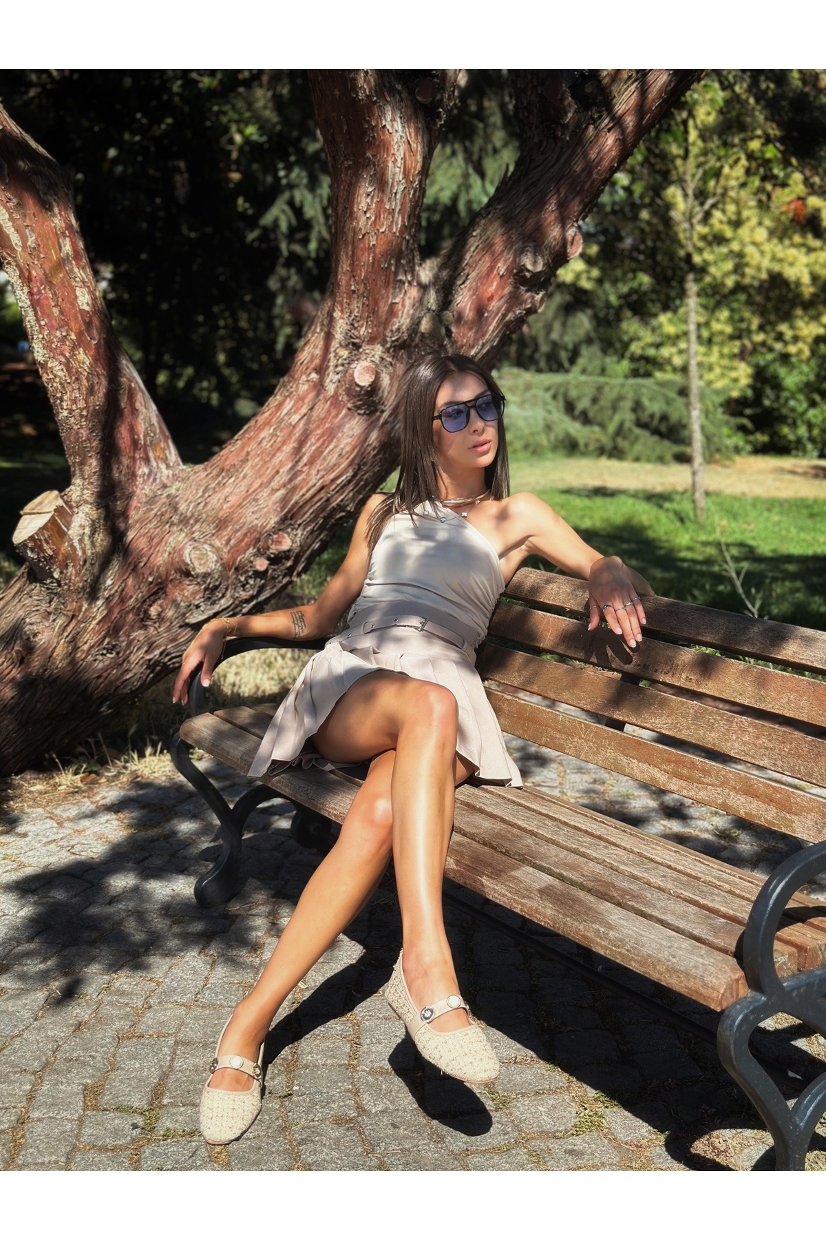 Yüksek Bel Şort Etek Court Pleats Tennis Club Koleksiyonu Bej Yüksek Bel Şort Etek Court Pleats Tennis Club Koleksiyonu Bej TC-SRT L