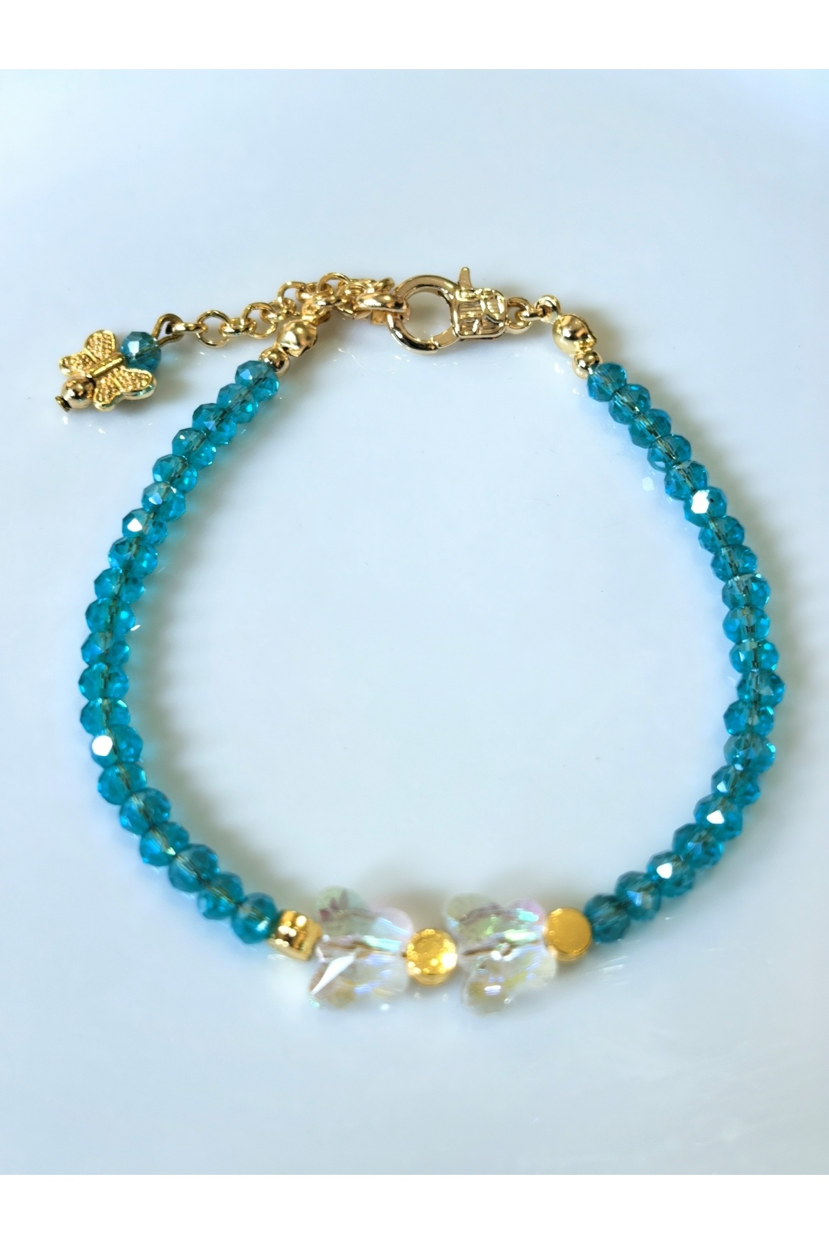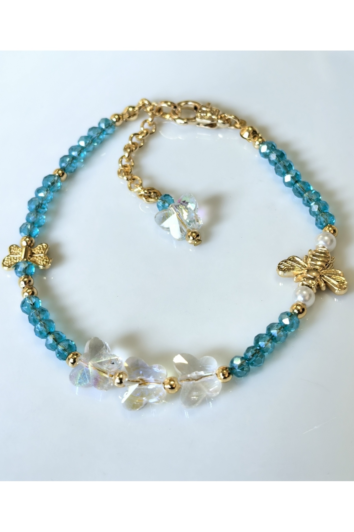 Thnblack Kristal Bileklik Turkuaz Rengi Kristal Boncuklu Kelebek Ve Arı Figürlü Thnblack Kristal Bileklik Turkuaz Rengi Kristal Boncuklu Kelebek Ve Arı Figürlü TB-B2005 Standart