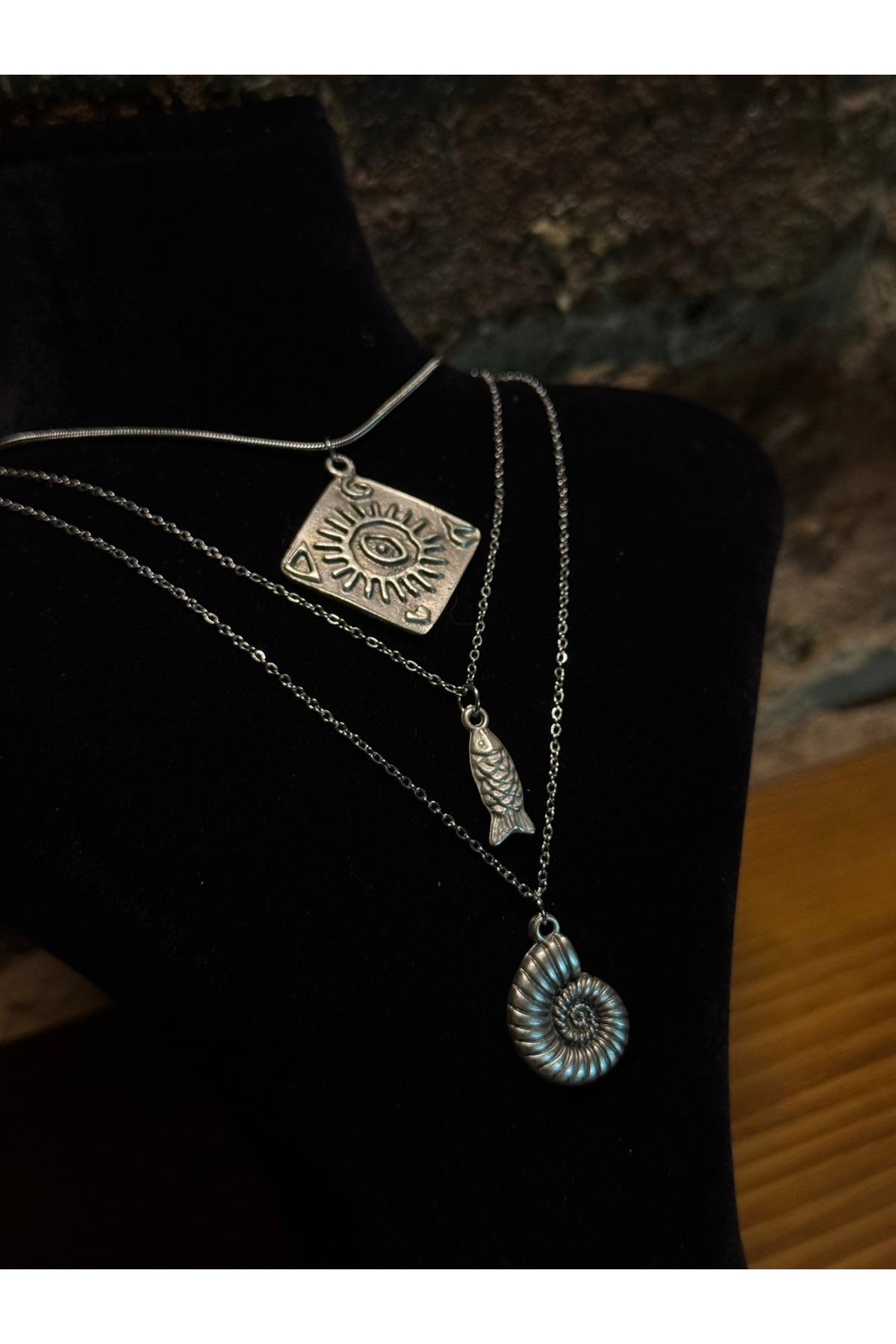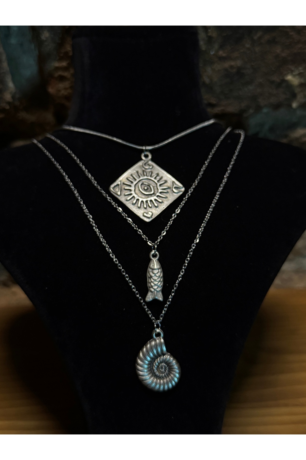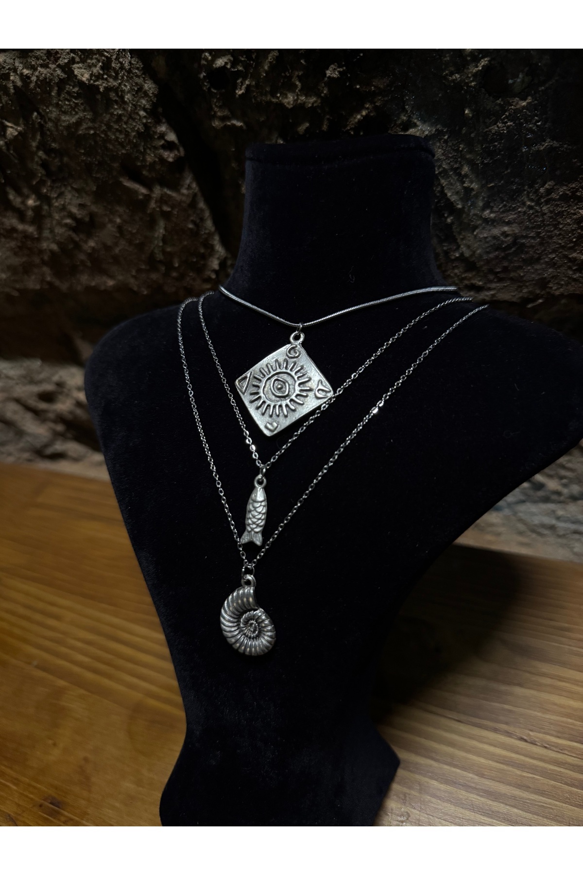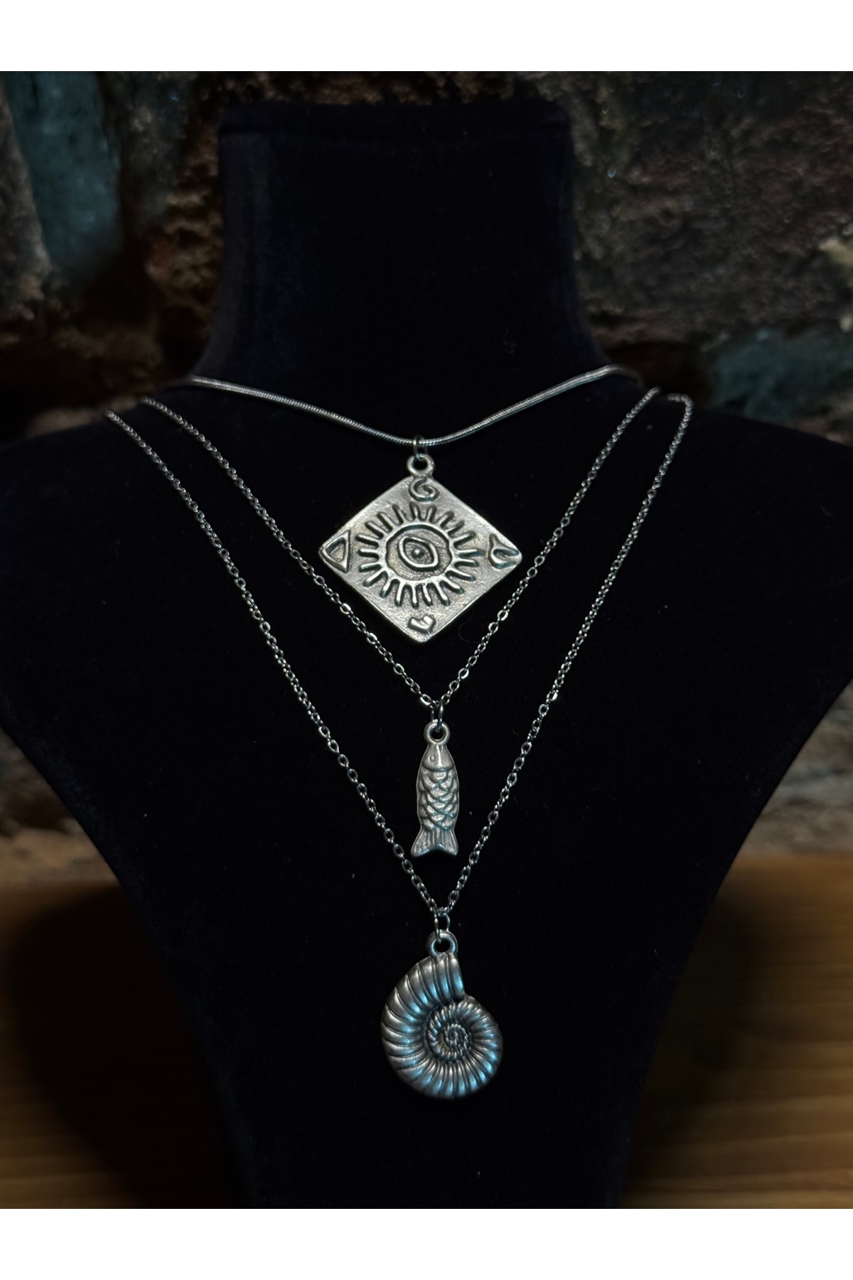 3'lü Çelik Zincirli Antik Gümüş Uçlu Kolye Seti Göz-Balık-Salyangoz 3'lü Çelik Zincirli Antik Gümüş Uçlu Kolye Seti Göz-Balık-Salyangoz LKCLKANTİK0001 3'lü Set