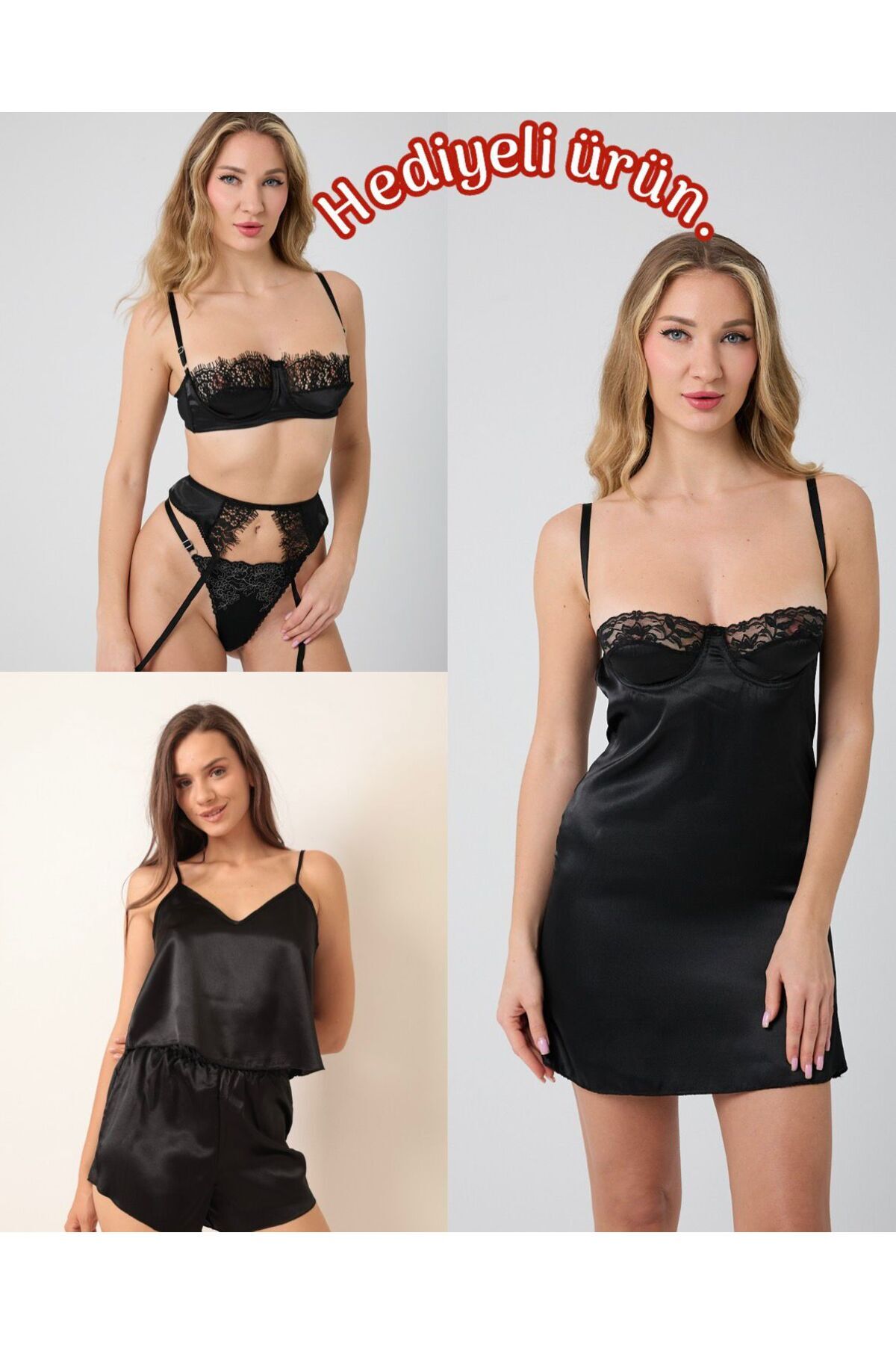 Saten Gecelik 3 Lü Çeyiz Paketi Saten Gecelik 3 Lü Çeyiz Paketi Ç51223 XL