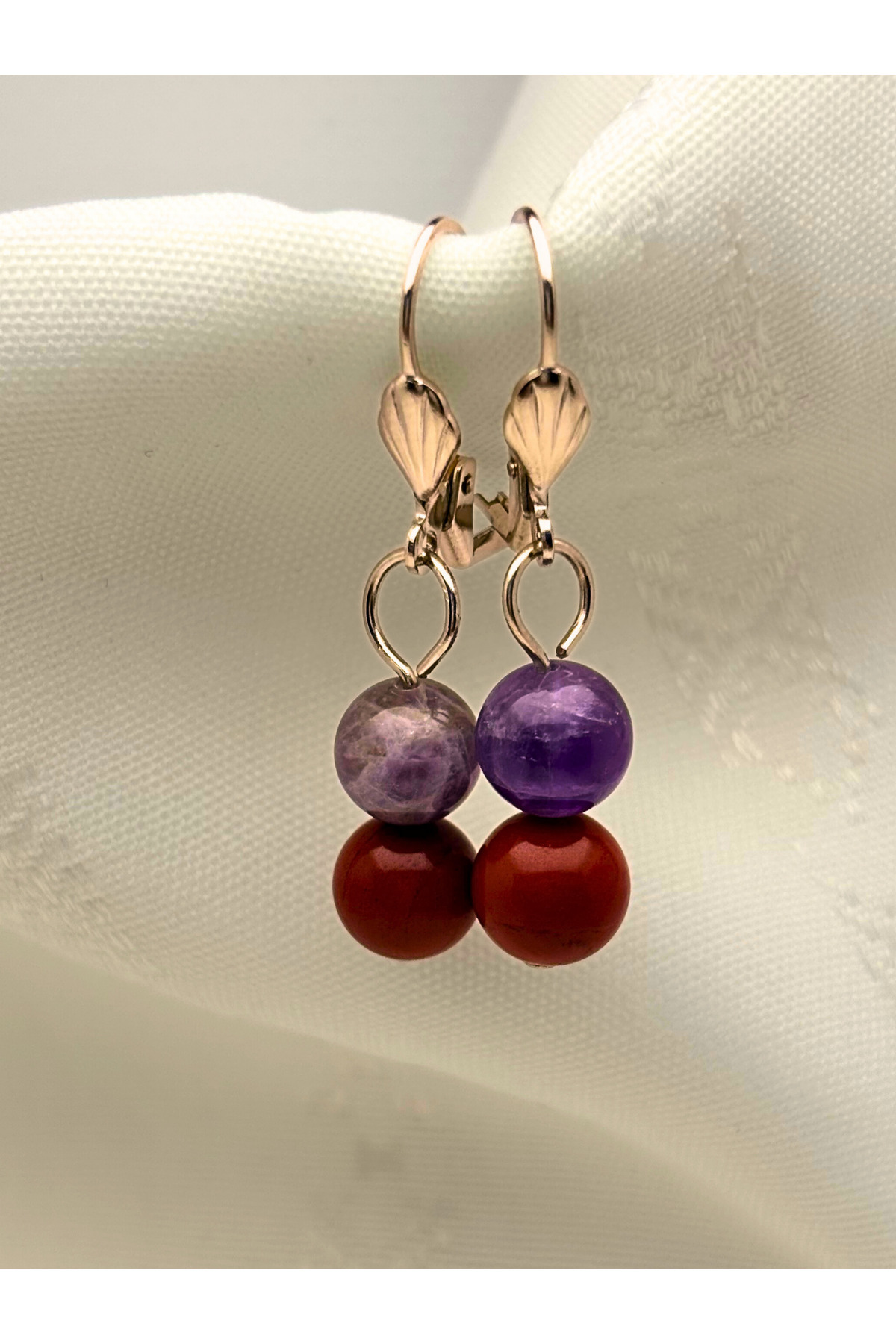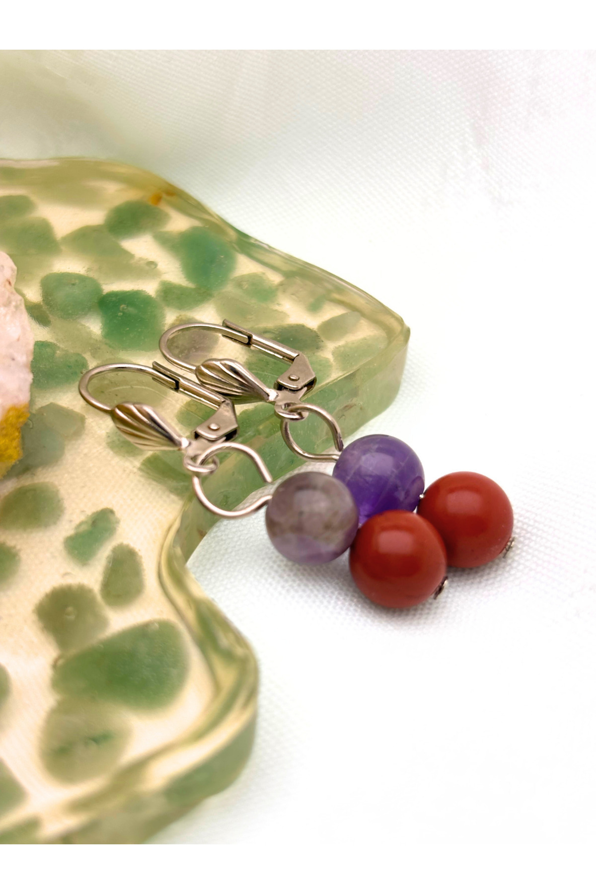 Ametist & Jasper Taşlı Sallantılı Gümüş Renk El Yapımı Kadın Küpe, Mor Kırmızı Çift Renk Küpe Ametist & Jasper Taşlı Sallantılı Gümüş Renk El Yapımı Kadın Küpe, Mor Kırmızı Çift Renk Küpe 19817 تک سایز