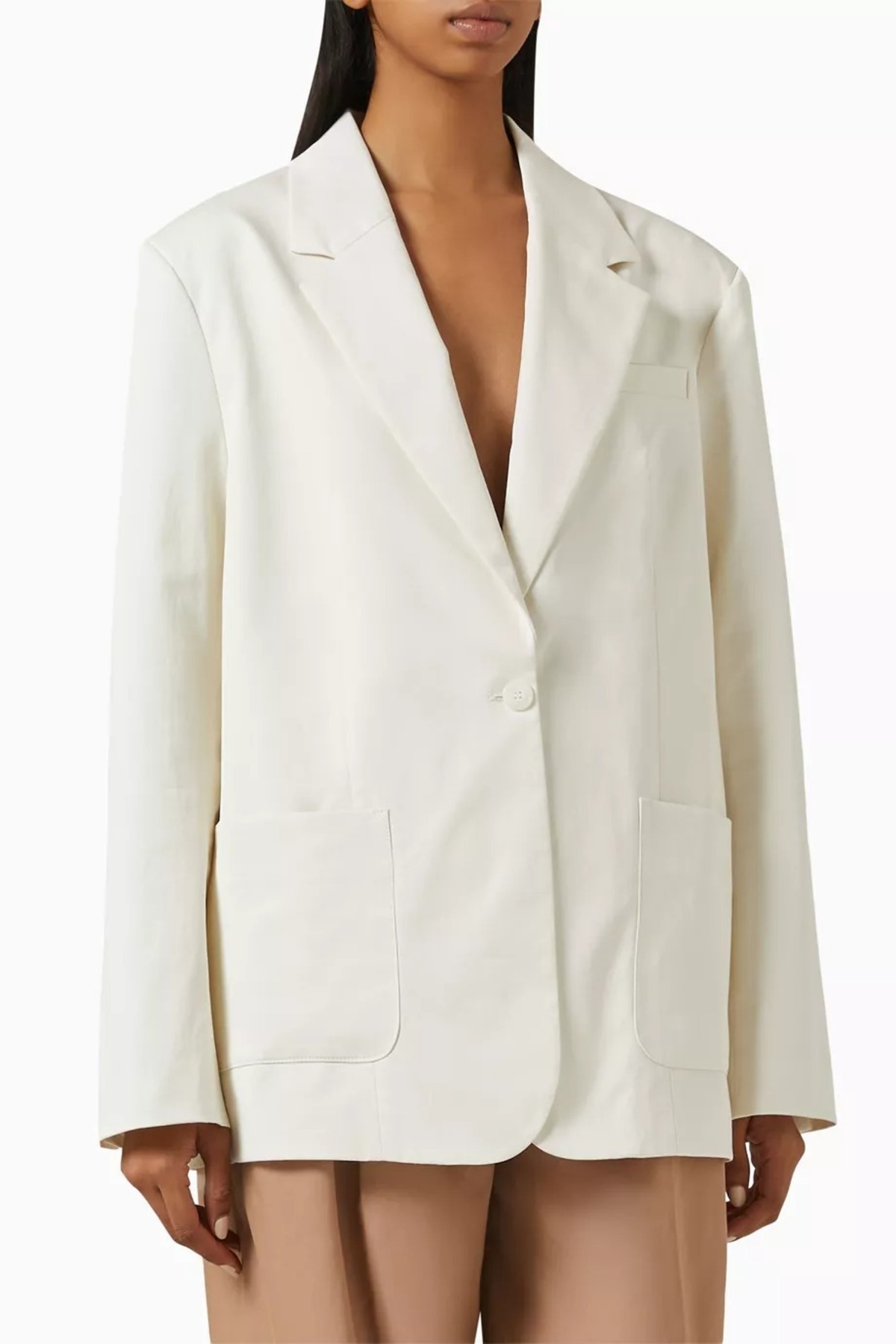Rahat Kesim Pamuk Twill Kadın Blazer Ceket Rahat Kesim Pamuk Twill Kadın Blazer Ceket 218314038 L