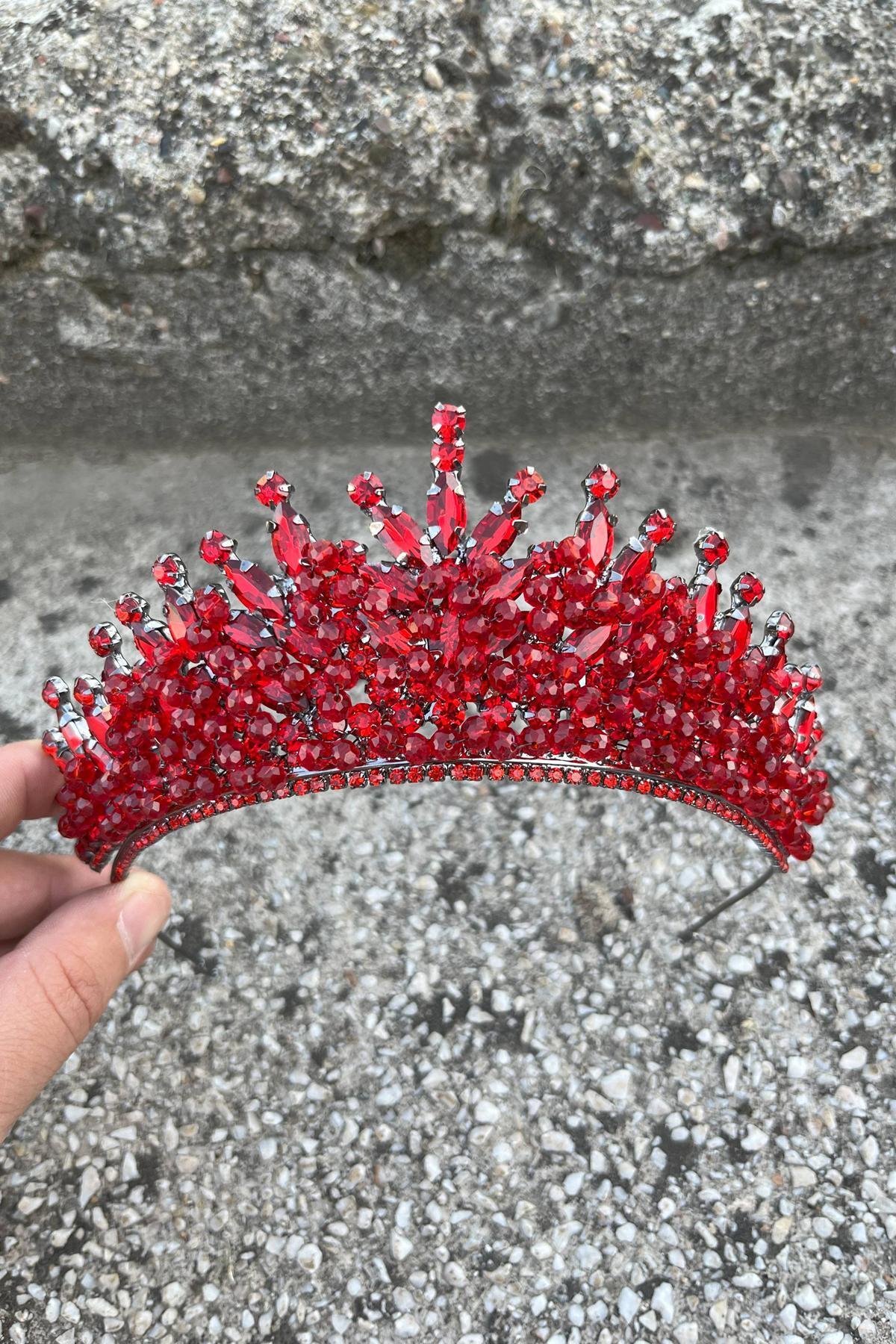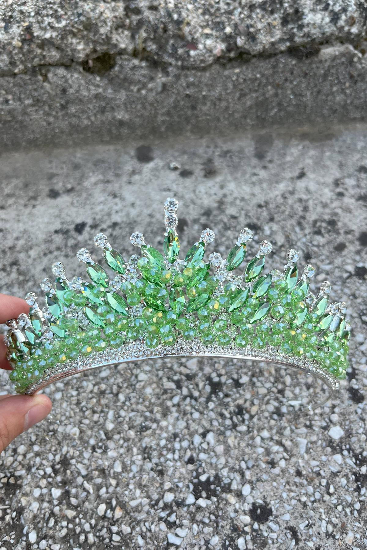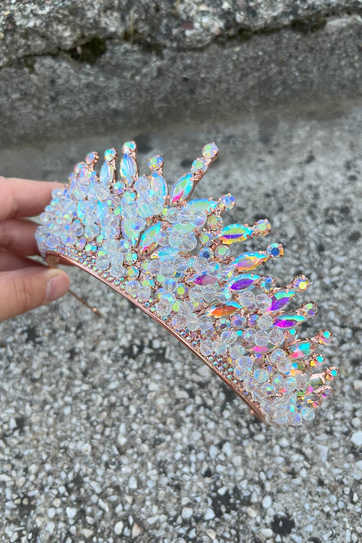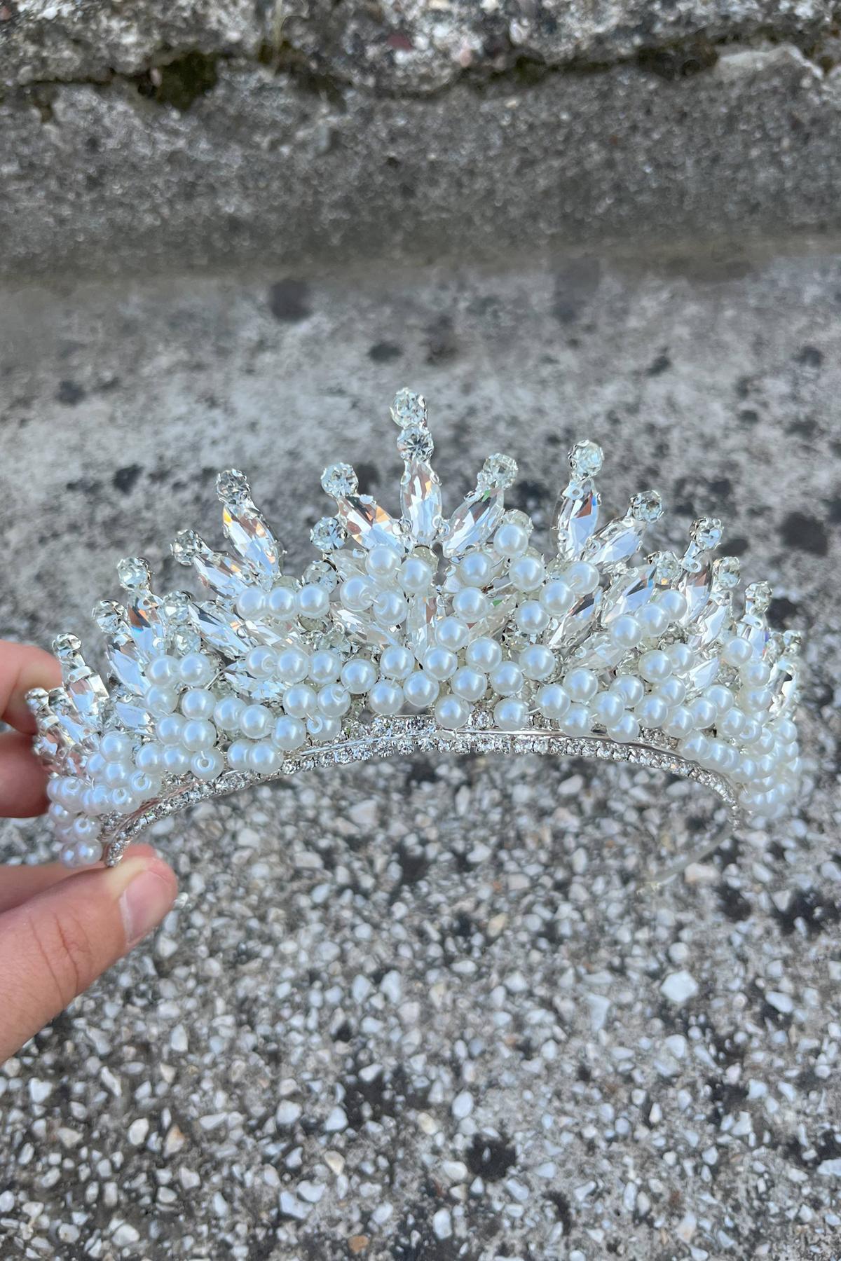 Daisy Taşlı Gelin Tacı – Janjanlı Kına Düğün Taç Modeli, Parlak Saç Aksesuarı