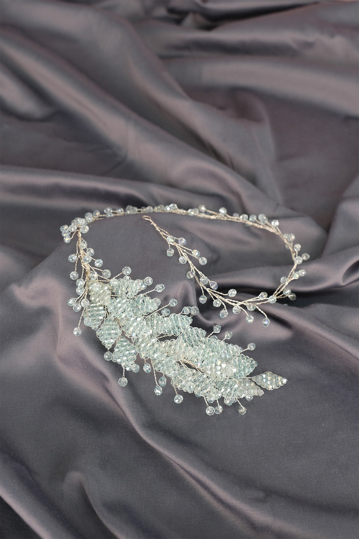 Daisy Taşlı Gelin Tacı – Krem İncili Kına Düğün Taç Modeli, Parlak Saç Aksesuarı