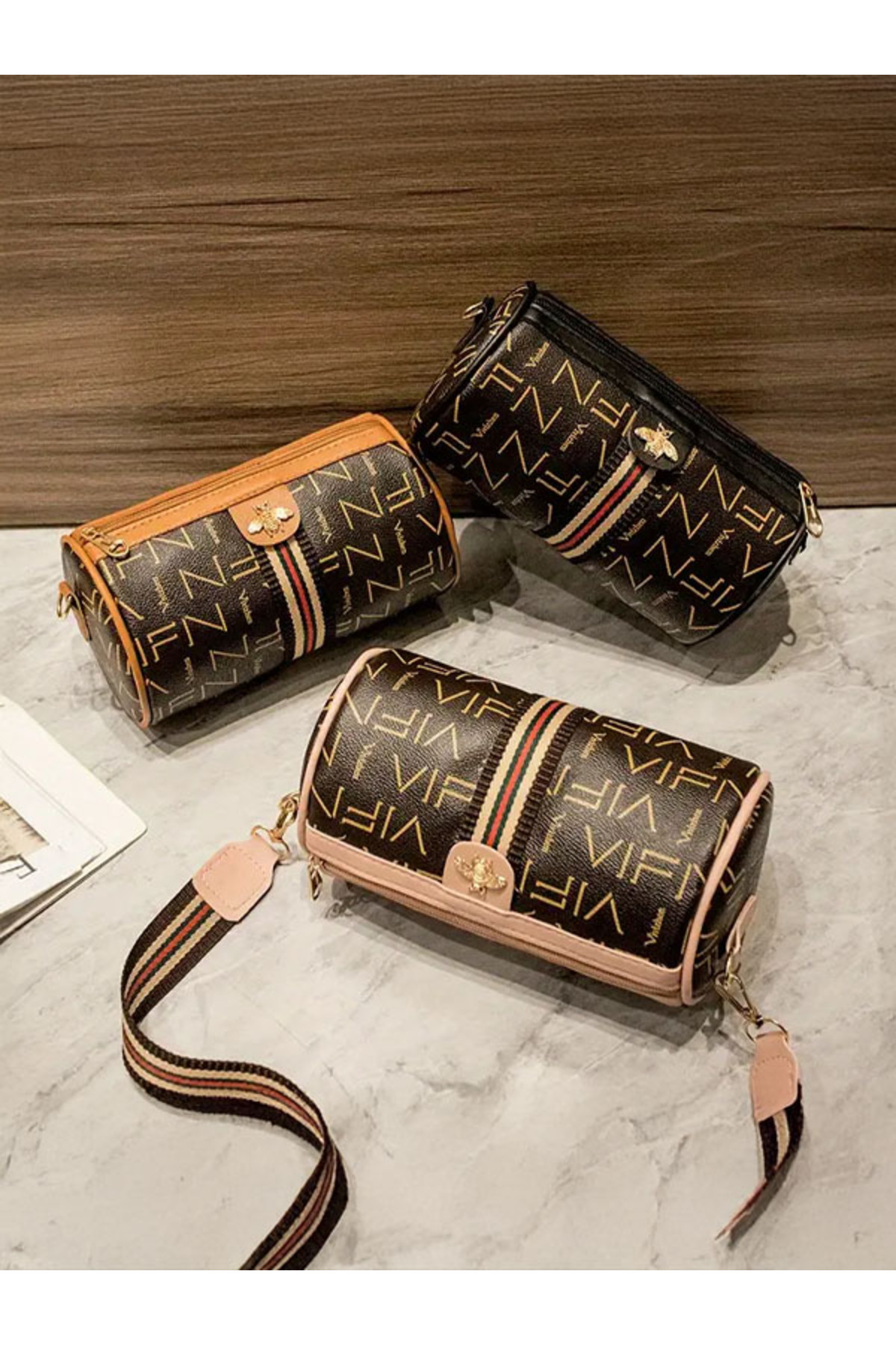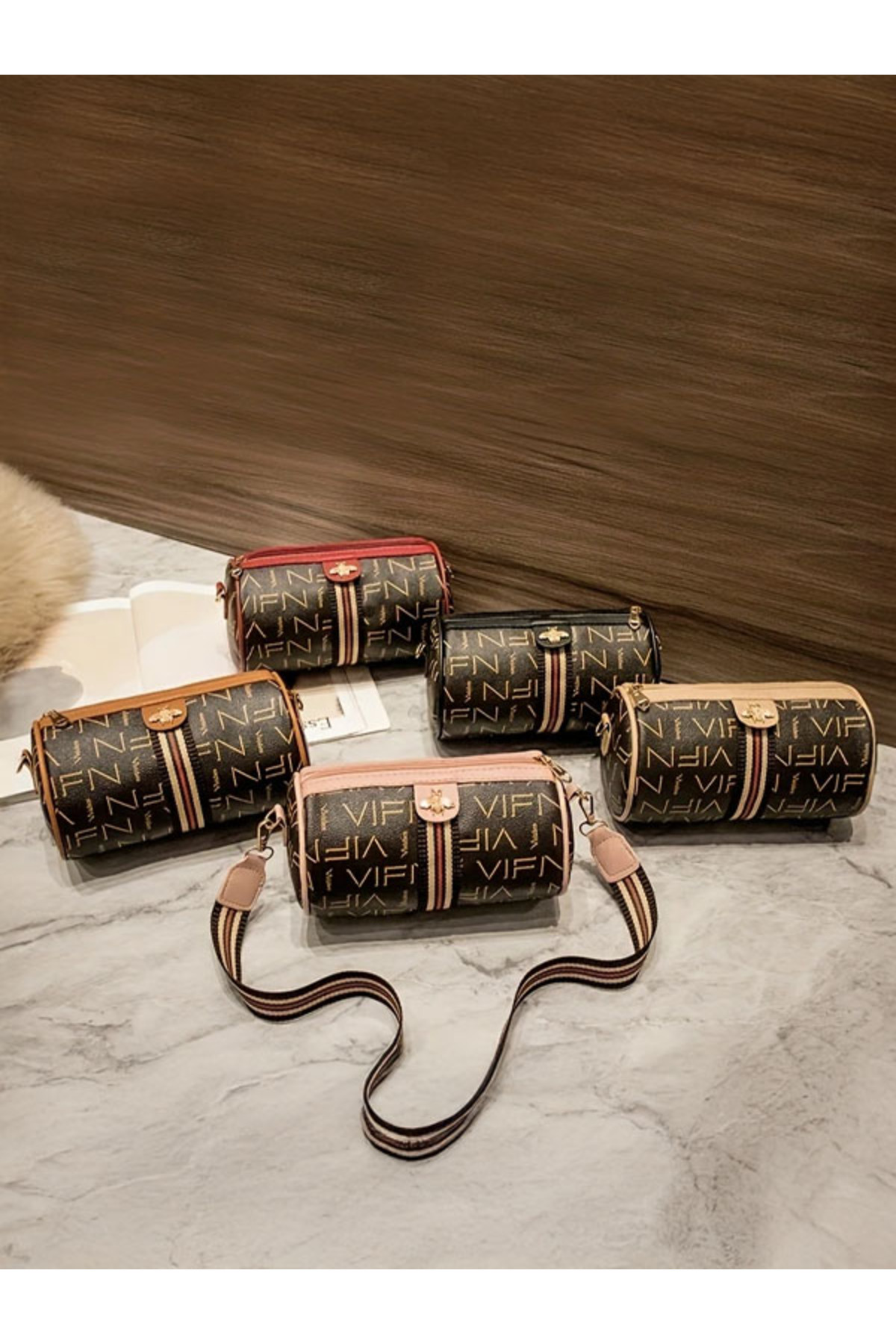 Harf Baskılı Boston Çantası, Trendy PU Deri Siyah Kahverengi Kadın Omuz Çantası Harf Baskılı Boston Çantası, Trendy PU Deri Siyah Kahverengi Kadın Omuz Çantası HARFCNT Standart