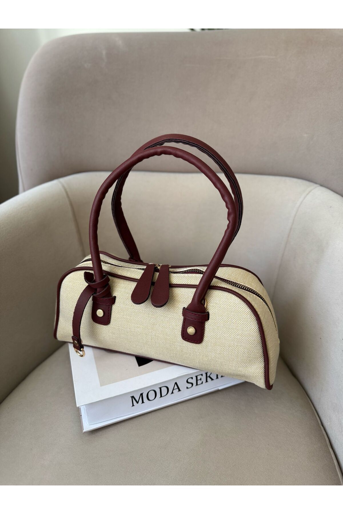 Kadın Bordo Renk Hasır Çanta Yanları Suni Deri Fermuarlı Baget Kol Ve Omuz Çantası Kadın Bordo Renk Hasır Çanta Yanları Suni Deri Fermuarlı Baget Kol Ve Omuz Çantası MODASKZ37 Standart