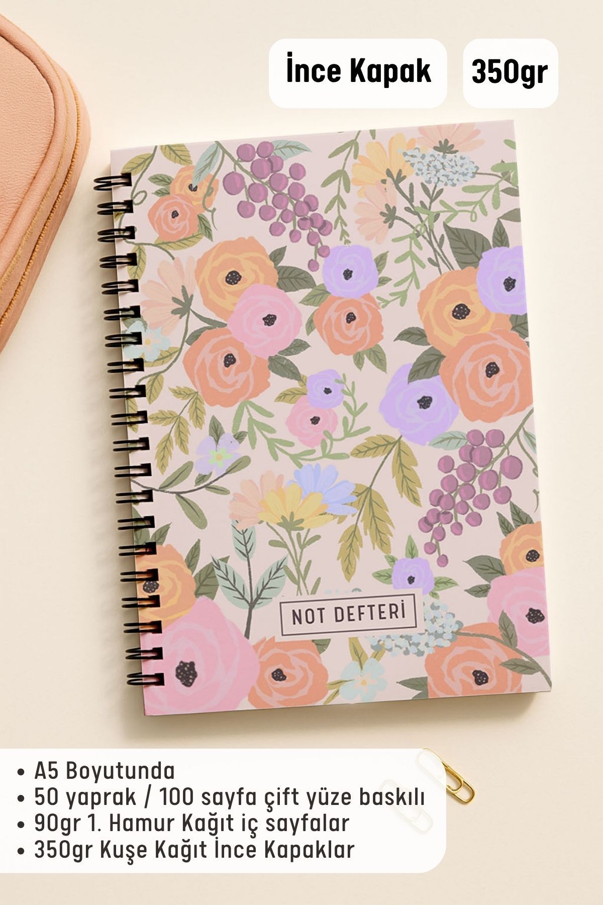 A5 Spiralli Çizgisiz Okul Defteri, 50 Yaprak 100 Sayfa, Karton Kapak Not Defteri, Pamuk Şekerli A5 Spiralli Çizgisiz Okul Defteri, 50 Yaprak 100 Sayfa, Karton Kapak Not Defteri, Pamuk Şekerli ELD-OD-00603 تک سایز