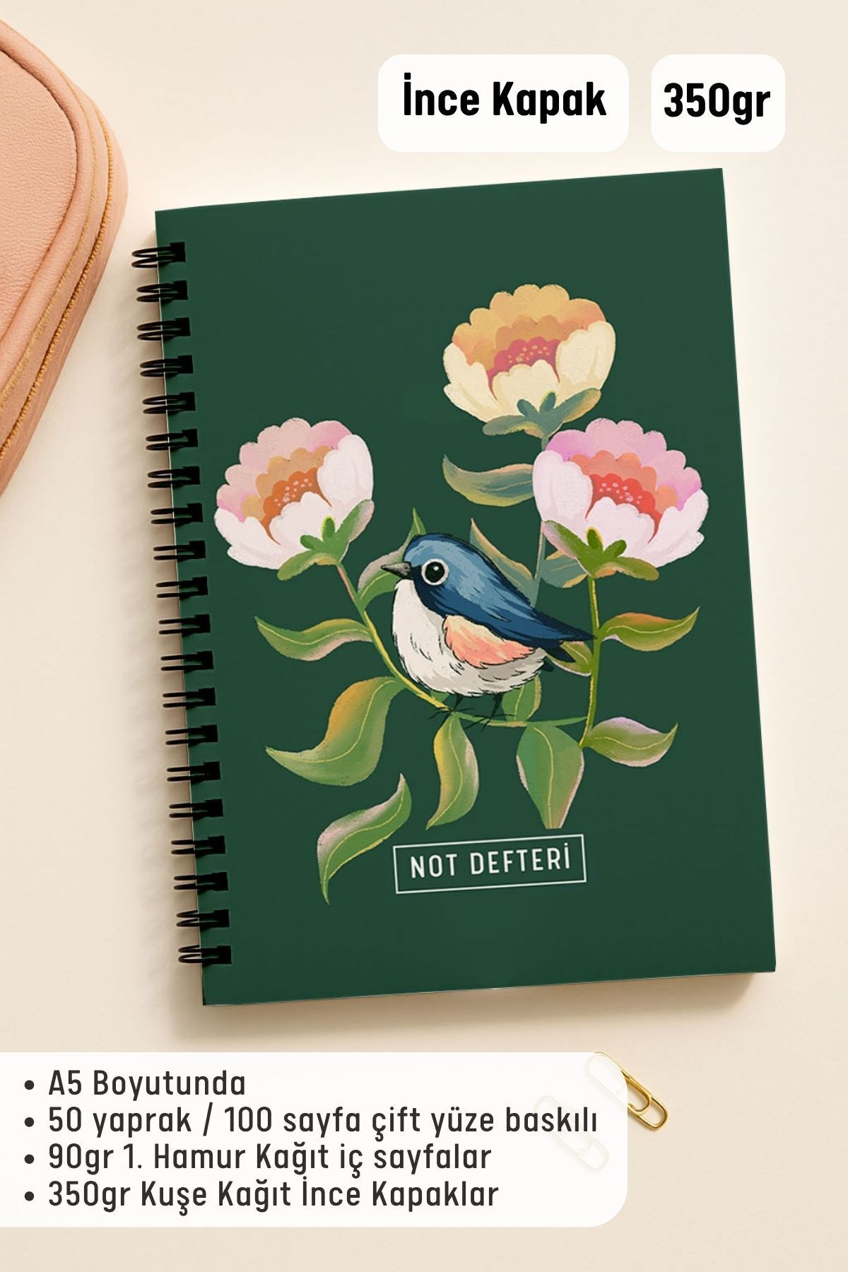 A5 Spiralli Çizgisiz Okul Defteri, 50 Yaprak 100 Sayfa, Karton Kapak Not Defteri, Yeşil Kuşlu A5 Spiralli Çizgisiz Okul Defteri, 50 Yaprak 100 Sayfa, Karton Kapak Not Defteri, Yeşil Kuşlu ELD-OD-00603 تک سایز