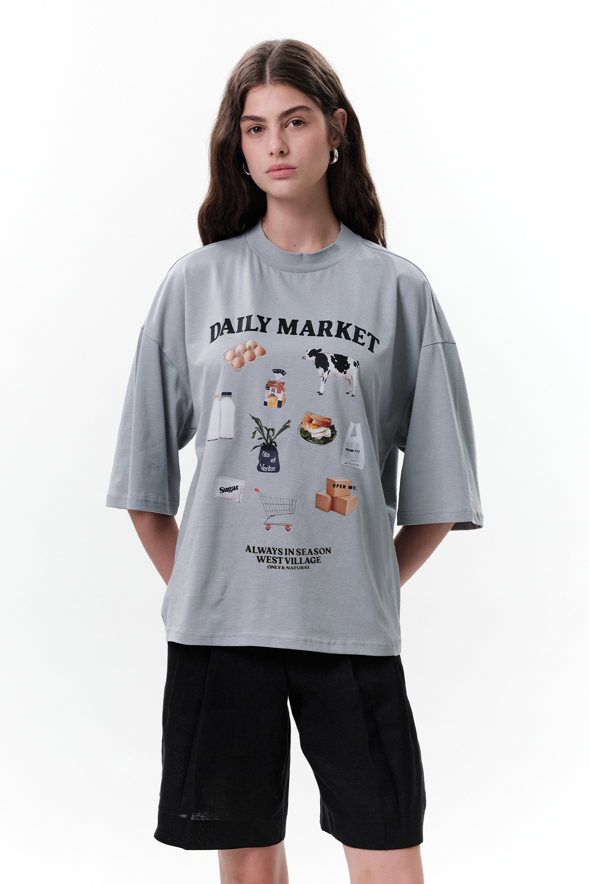 BASKILI KISA KOL T-SHIRT PASTA BASKILI KISA KOL T-SHIRT PASTA SS25TSH00009 L