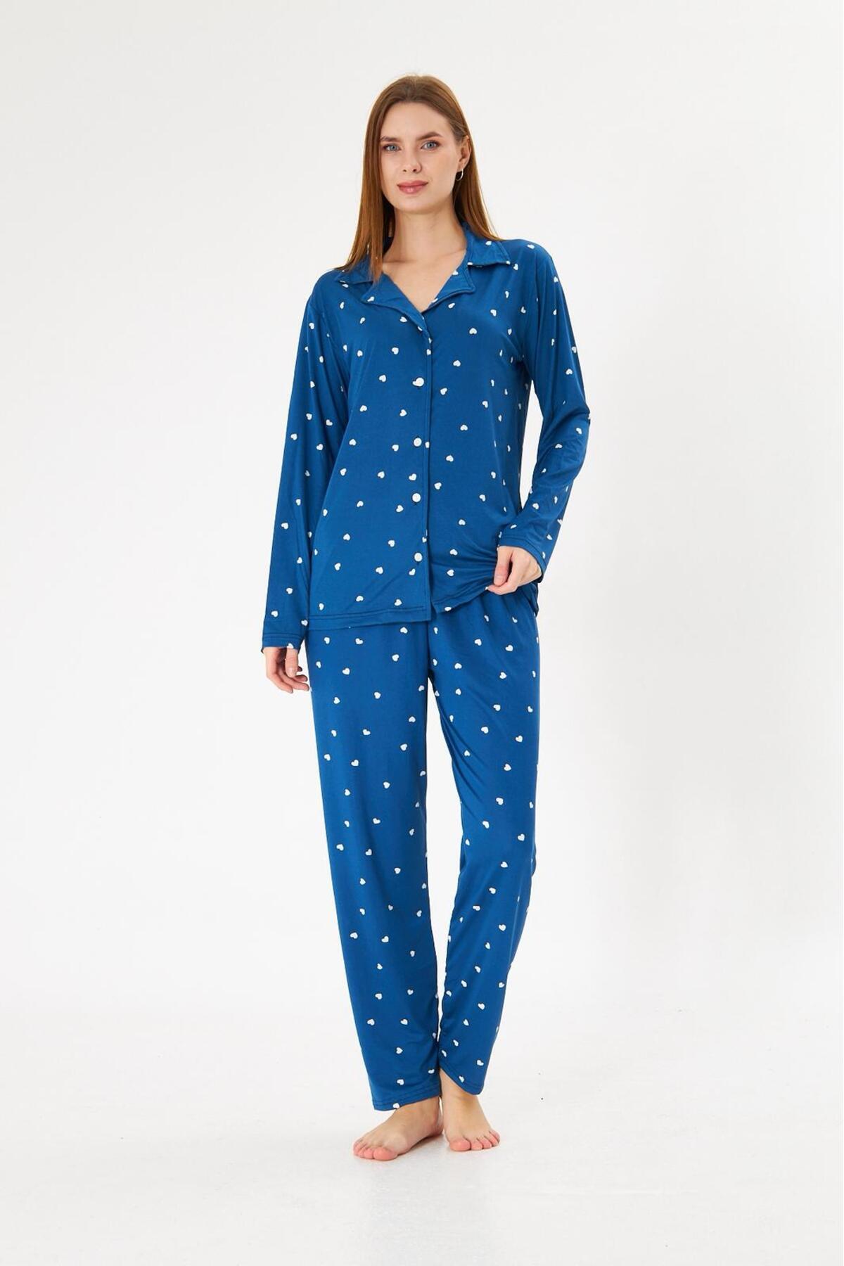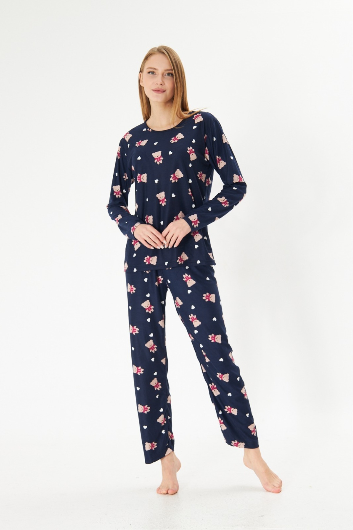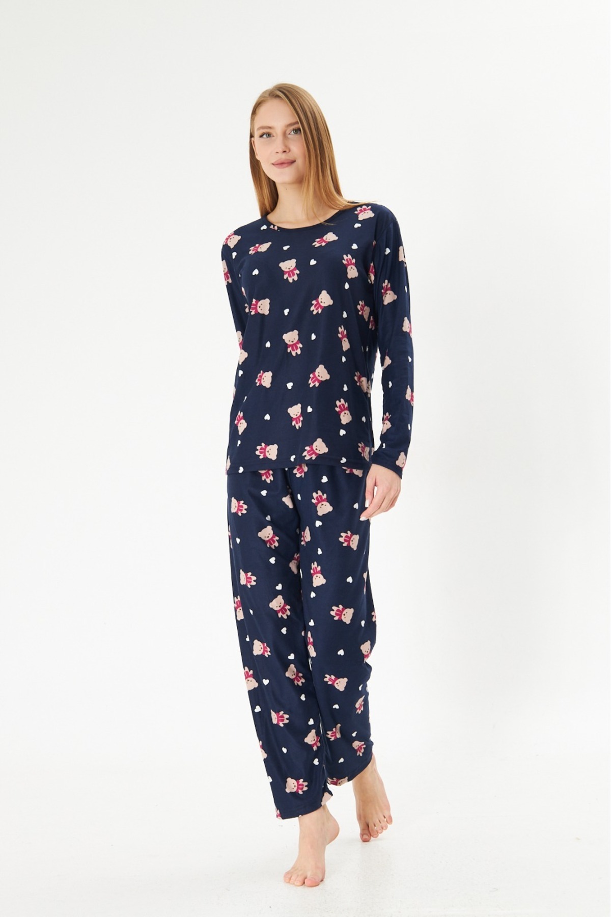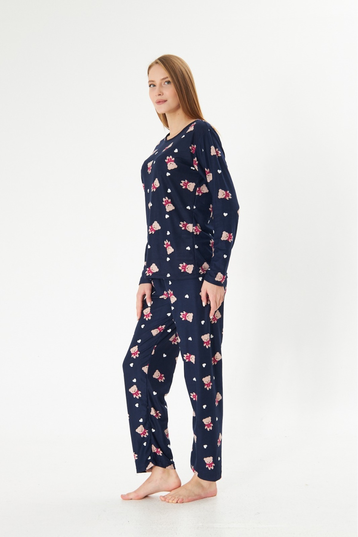 Kadın Pamuklu Süet Lacivert Ayıcık Kalp Desenli Uzun Kollu Bisiklet Yaka Kışlık Pijama Takımı Kadın Pamuklu Süet Lacivert Ayıcık Kalp Desenli Uzun Kollu Bisiklet Yaka Kışlık Pijama Takımı sm4821 2XL