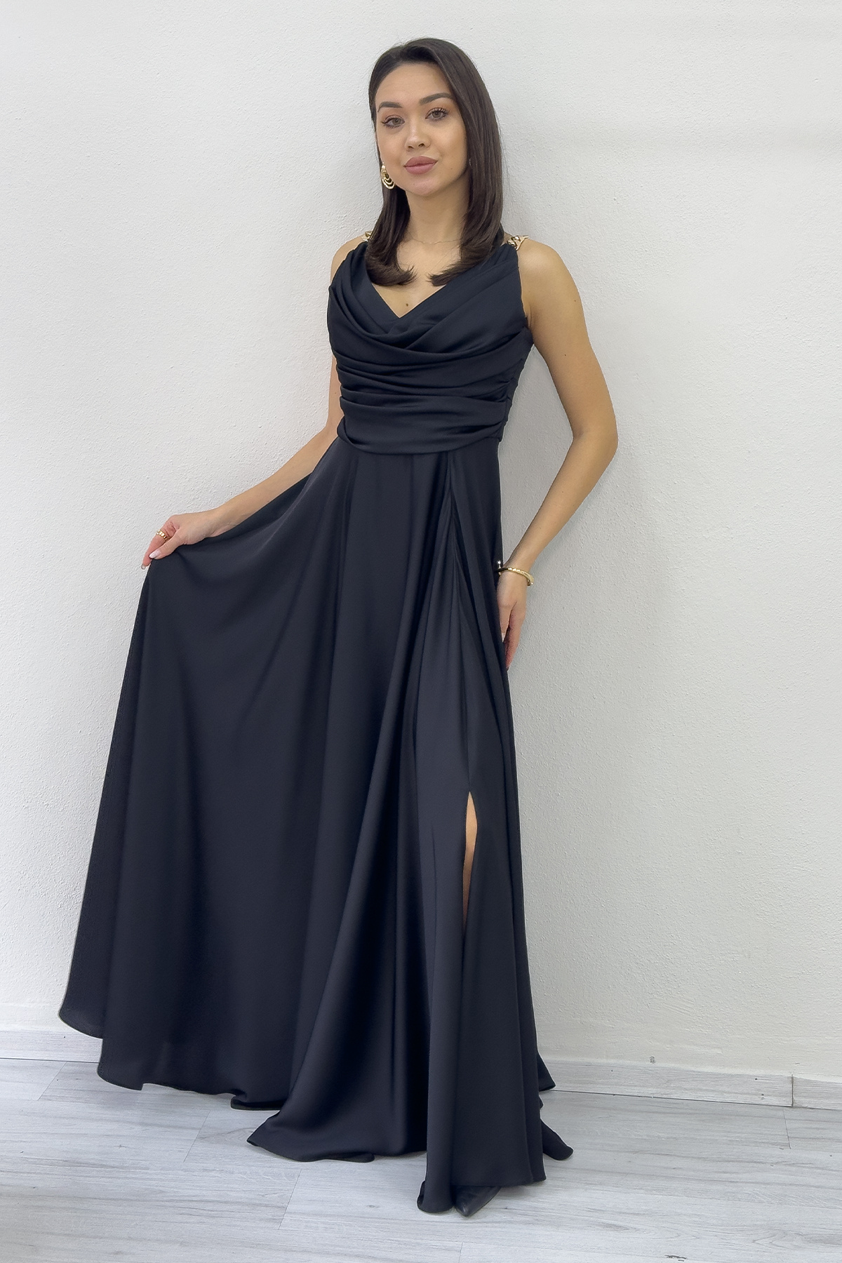 Kadın Halter Yaka Simli Drapeli Yırtmaçlı Abiye Elbise Bebe Mavi, Pudra, Siyah Kadın Halter Yaka Simli Drapeli Yırtmaçlı Abiye Elbise Bebe Mavi, Pudra, Siyah ZKS000339 XL