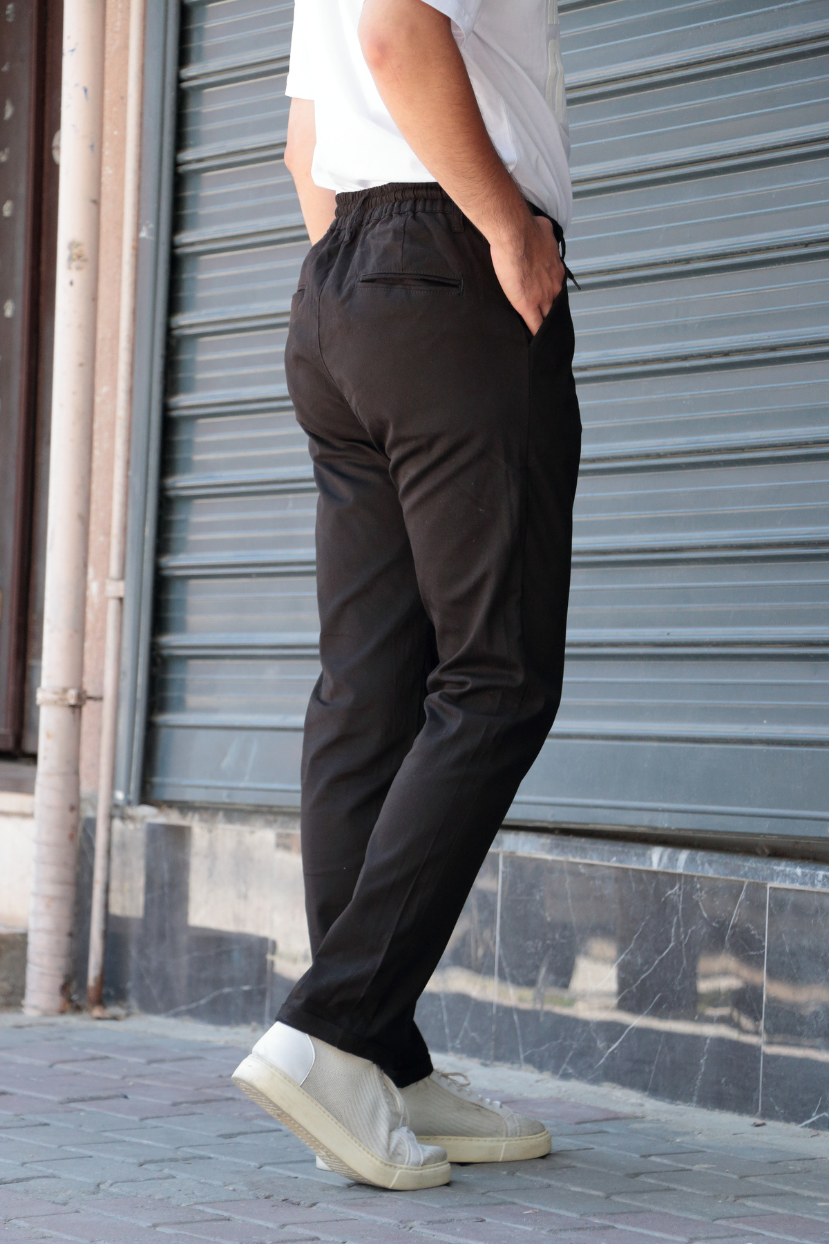 Erkek Siyah Yazlık Ince Kumaş Dar Kesim Pantolon Beli Lastik, Bağcık Ve Düğmeli, Fermuarlı, Yancepli Erkek Siyah Yazlık Ince Kumaş Dar Kesim Pantolon Beli Lastik, Bağcık Ve Düğmeli, Fermuarlı, Yancepli Gabardn5li 2XL