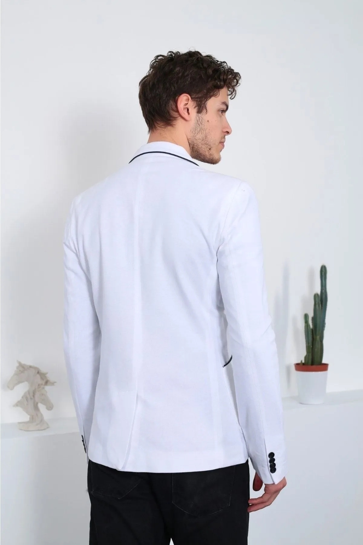 Siyah Detaylı Erkek Beyaz Üst Ceket Siyah Detaylı Erkek Beyaz Üst Ceket LUSHENCKT1 XL