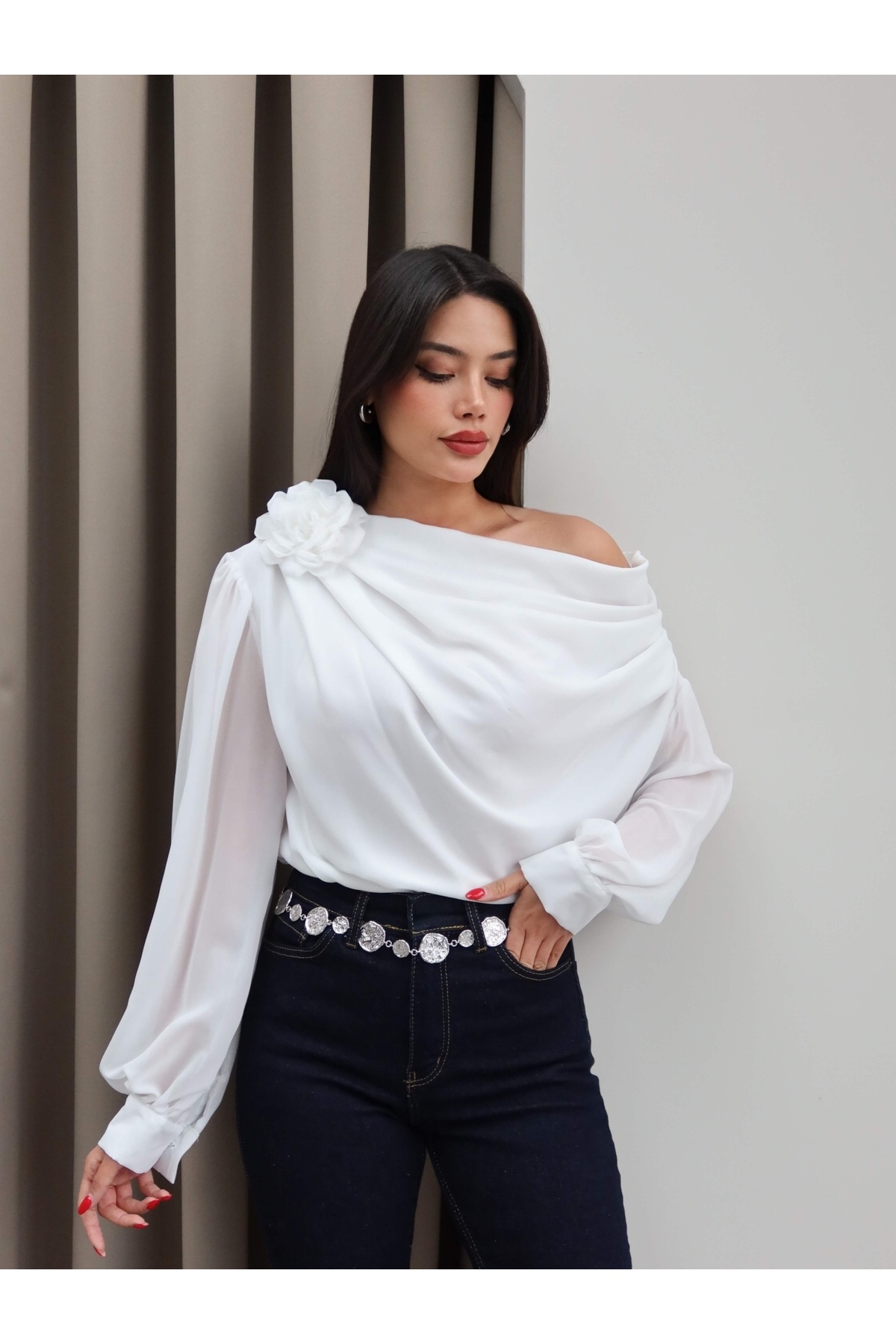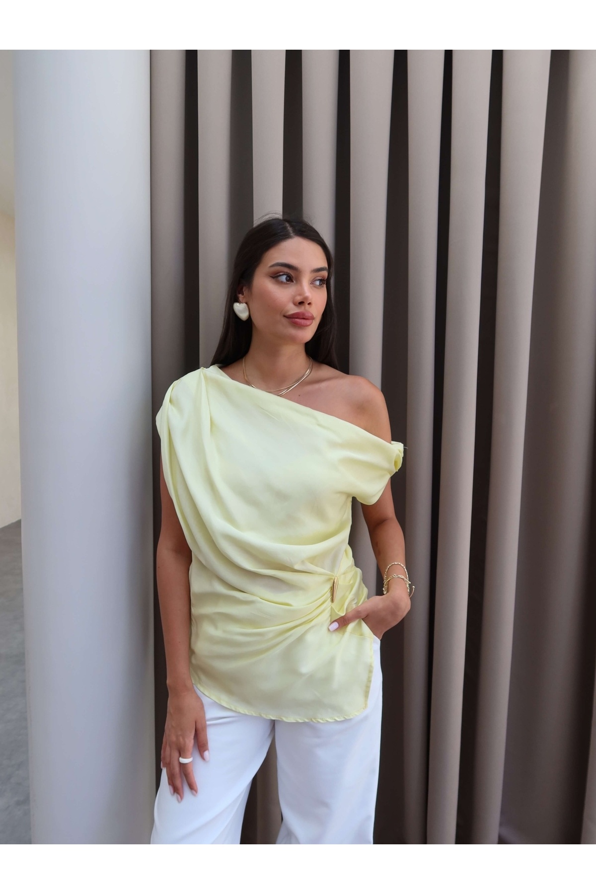 Büzgü Toka Detaylı Bluz Büzgü Toka Detaylı Bluz EH-5788 L