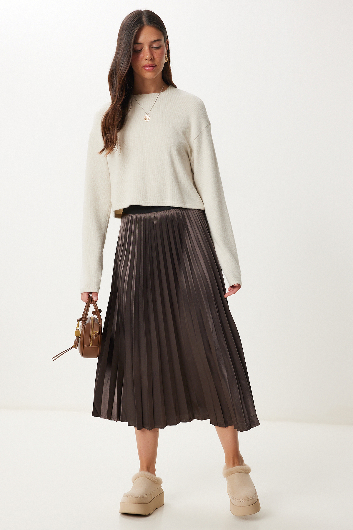 Kadın Metalik Gri Saten Yüzeyli Midi Etek MX00236 Kadın Metalik Gri Saten Yüzeyli Midi Etek MX00236 40