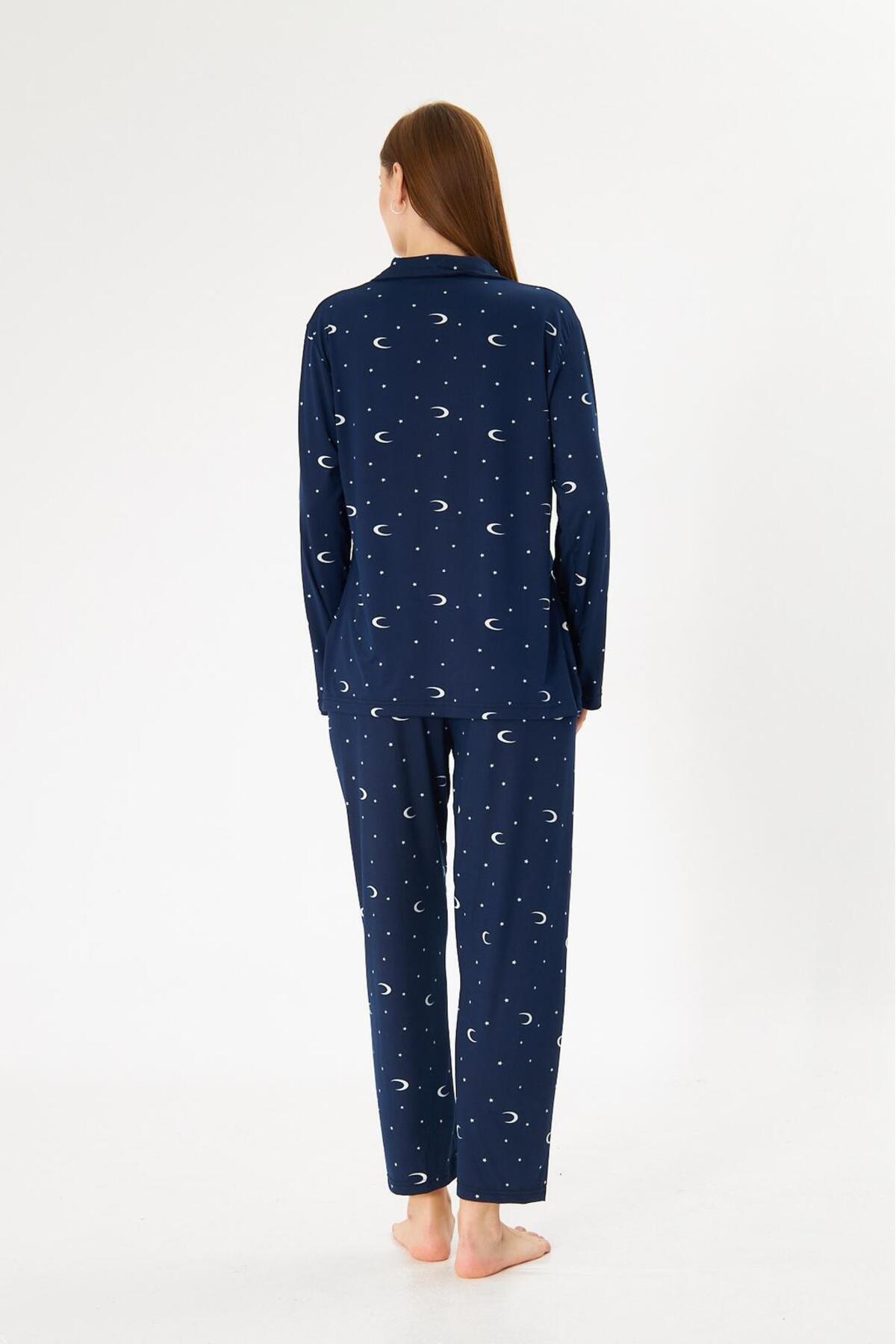 Kadın Milan Kumaş Lacivert Ay Yıldız Gece Temalı Gömlek Yaka Düğmeli Uzun Kollu Kışlık Pijama Takımı Kadın Milan Kumaş Lacivert Ay Yıldız Gece Temalı Gömlek Yaka Düğmeli Uzun Kollu Kışlık Pijama Takımı mr9511 XL